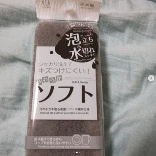 こちらはセリアのしっかり洗えて傷つけにくいスポンジ。食器洗いのスポンジとしてはもちろん、洗面台をお掃除するスポンジとしても使えそうですね。泡立ちもよく、水切れもスッキリ、というスポンジのようです。