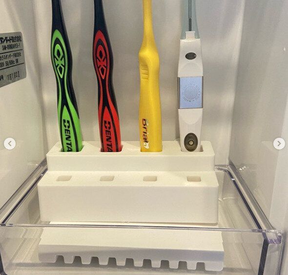 歯ブラシを使ったあと、歯ブラシホルダーに収納しているかたは多いと思いますが、歯ブラシ同士がくっつきそうになってしまうのが気になるとお困りではないでしょうか。そのようなかたにおすすめのものが「歯ブラシ&歯間ブラシスタンド」になります。ぱっと見、ふつうの歯ブラシホルダーに見えますが、じつはこの歯ブラシスタンドは適度な間隔の穴が開いているのが特徴。そのため、歯ブラシを根本からしっかり支え、隣に倒れることがありません。子どもでもしまいやすいため、歯ブラシをいつも清潔に保てるでしょう。水だれが気になる場合は、下に珪藻土マットを敷くのもおすすめです。見た目以上に便利なアイテムとなります。