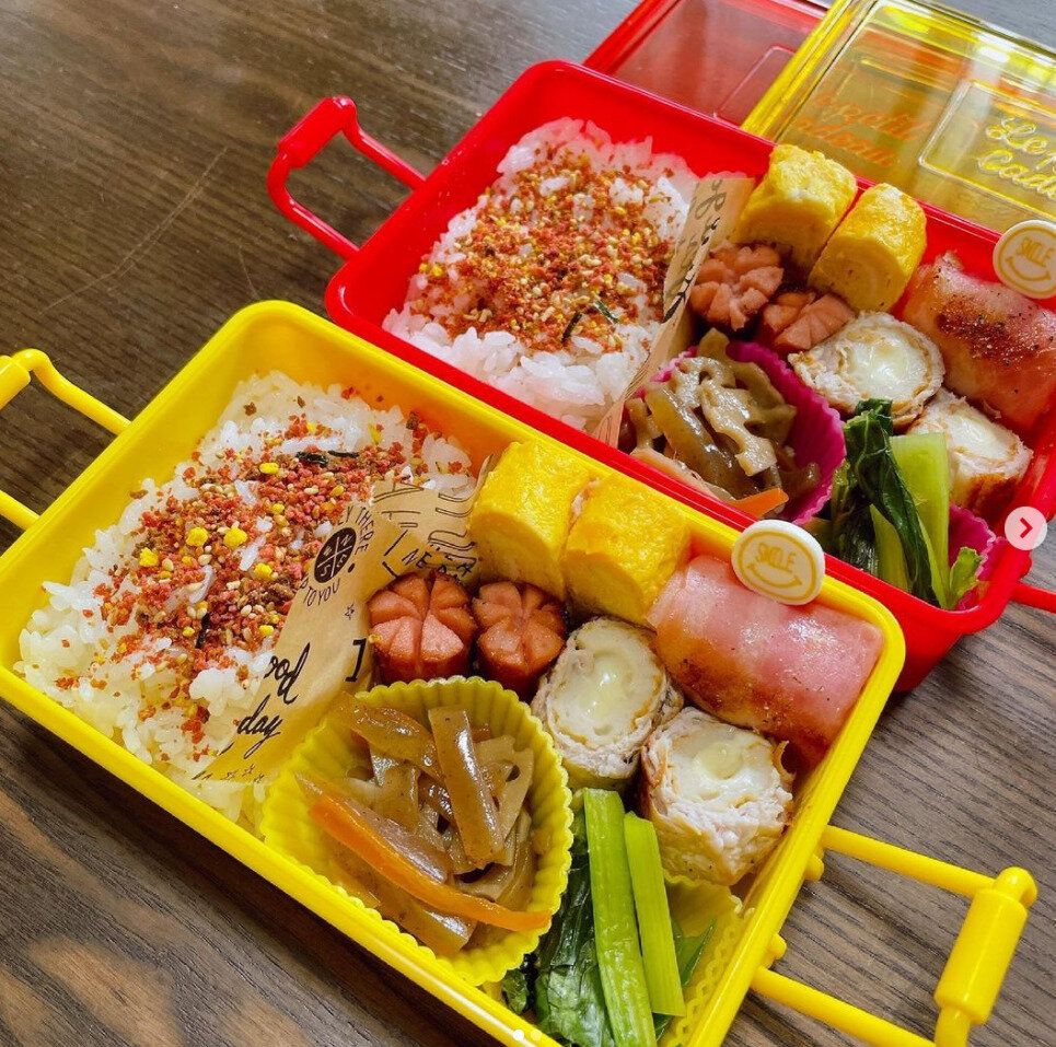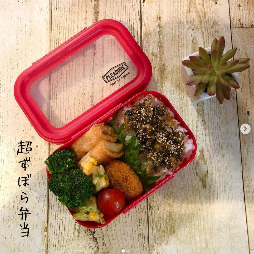 ワイドなデザインの「ボヌールシリーズ」のお弁当箱です。ボリューミーでおいしそうなおかずやご飯も、たっぷり入りそう。このようにお魚やそぼろをのせて、鮮やかに仕上げるのも素敵ですね!プチプラなので、お弁当箱を色違いでそろえるのもおすすめです。