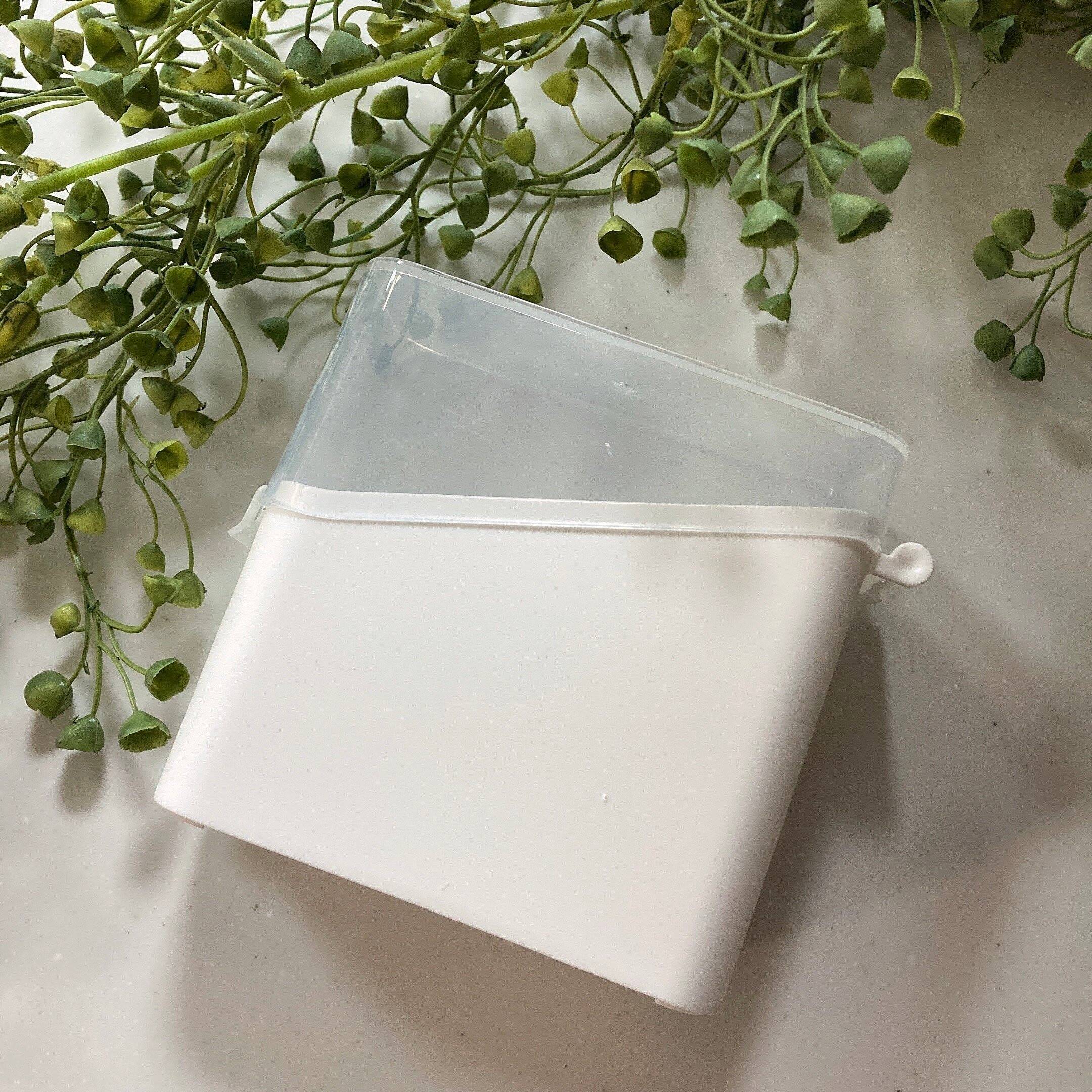 シンプルなデザインでホワイト。見た目にも清潔感があり冷蔵庫収納におすすめ。フタ部分が半透明で、残り枚数が確認しやすい点も優れています。