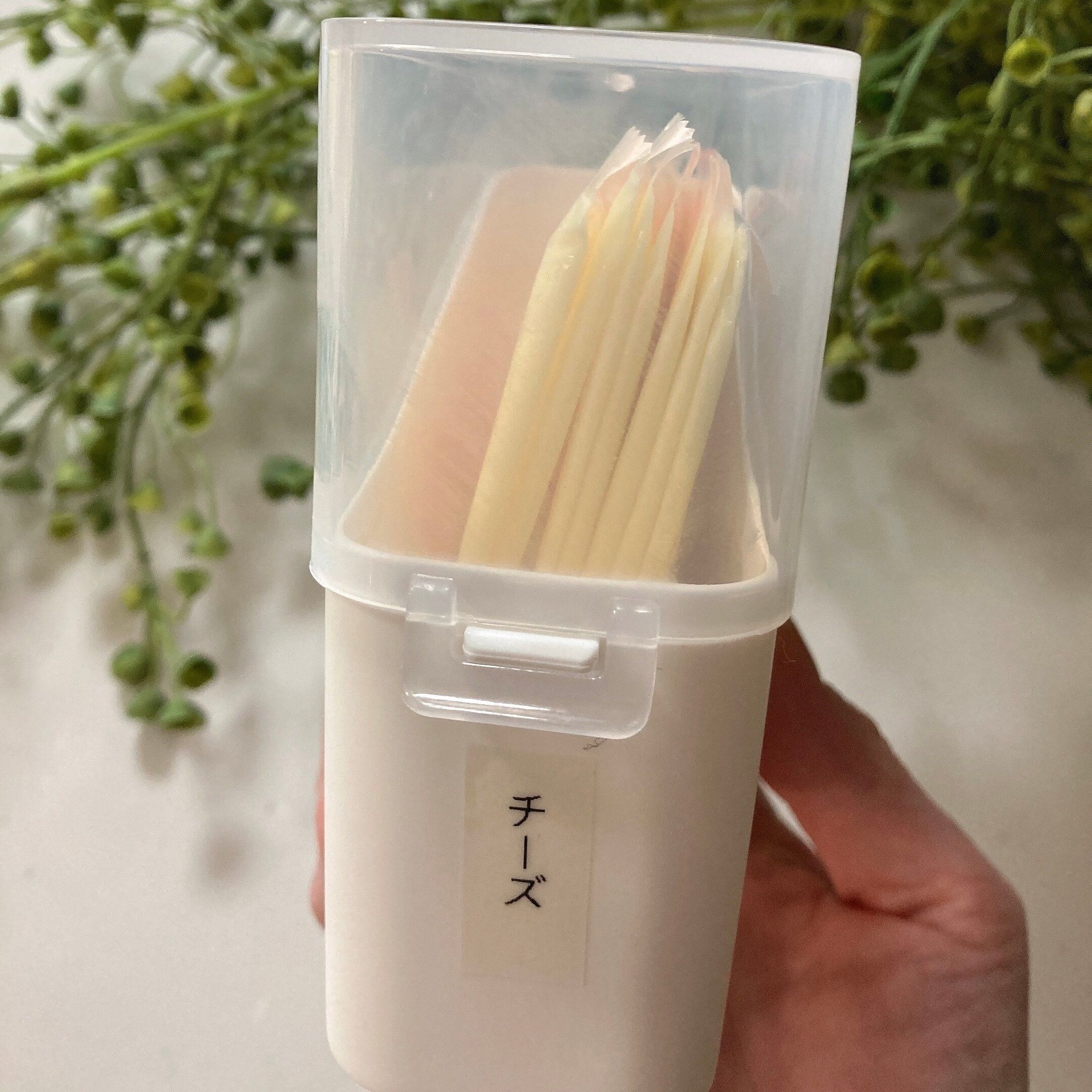 上部がパカっと開く縦型タイプ。フタがカチッとしっかり閉まるので、スライスチーズの乾燥を防ぐことができます。