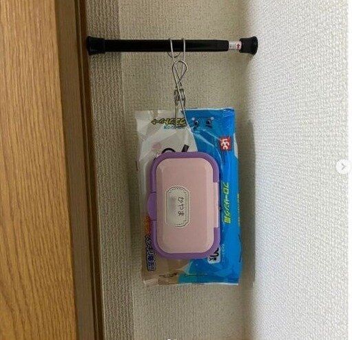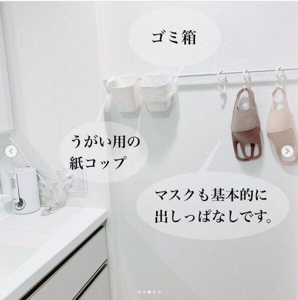 感染対策アイテムはつっぱり棒で洗面近くに配置する