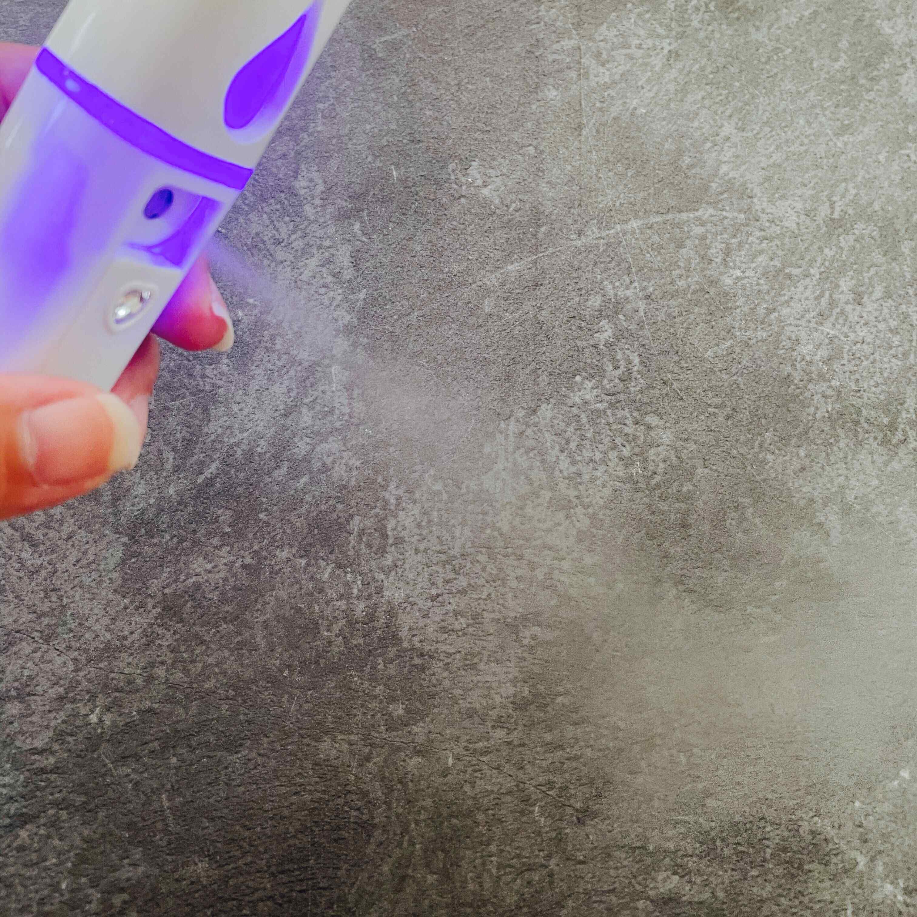 本体のスイッチをスライドさせると、紫のライトが点灯し勢いよくミストが出てきます。