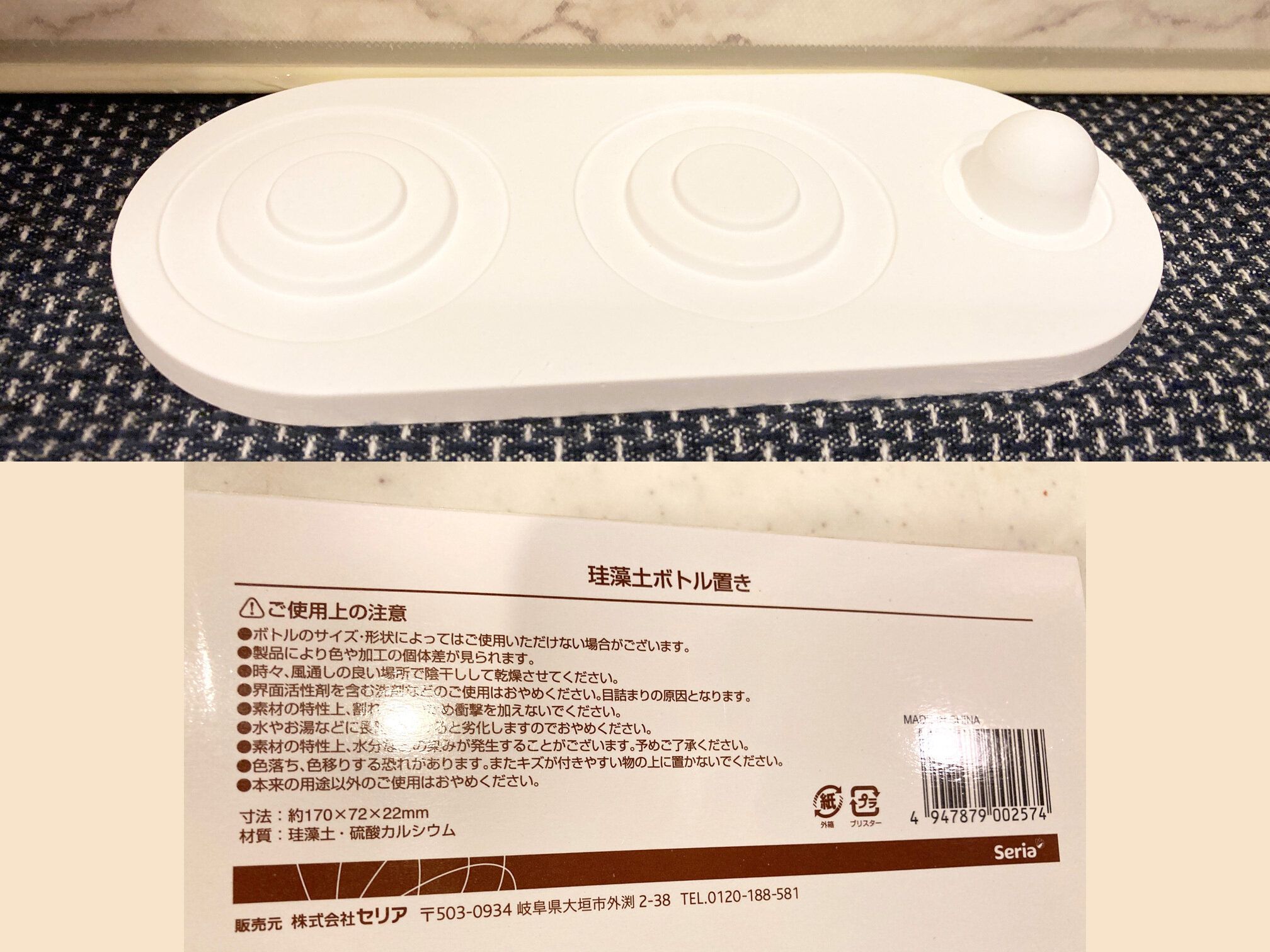 今回は「こんなのが欲しかった!」と、セリアで手に取った瞬間カゴに入れた、珪藻土ボトル置きをご紹介したいと思います。