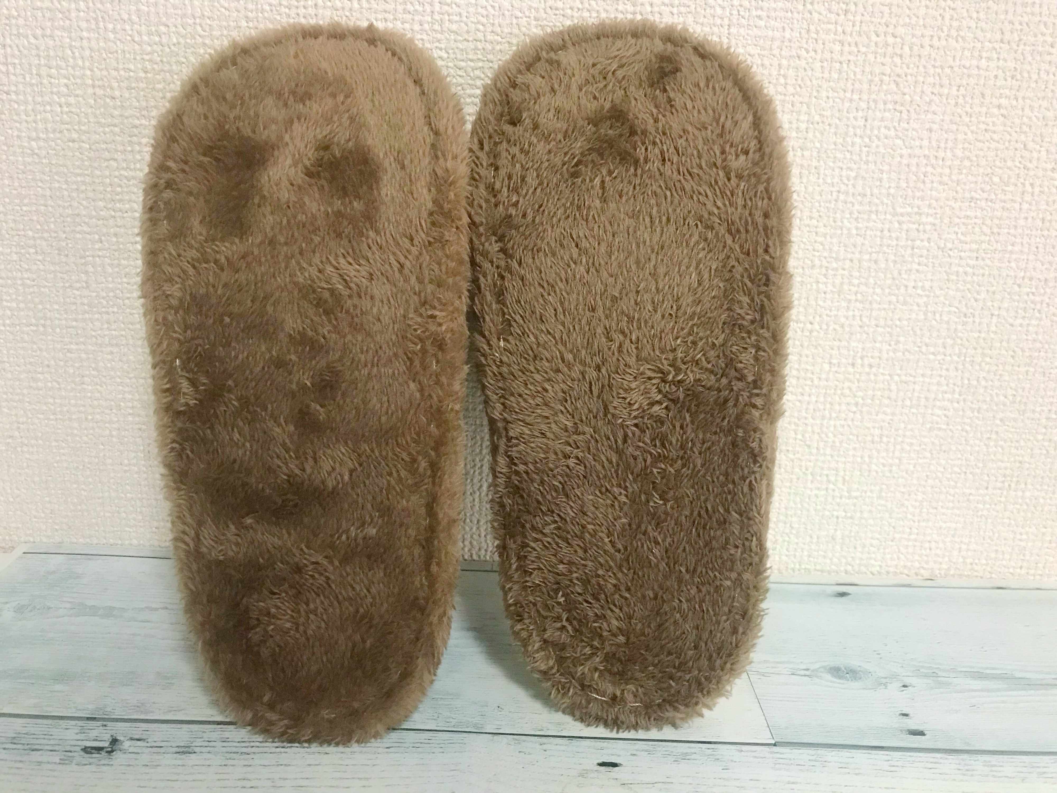 3COINSのお掃除スリッパは足の裏が、ふわふわな短めの毛が特徴的。髪の毛やほこりなどを集めてくれるだけでなく、スリッパの毛についたゴミも取り除きやすいように感じています。