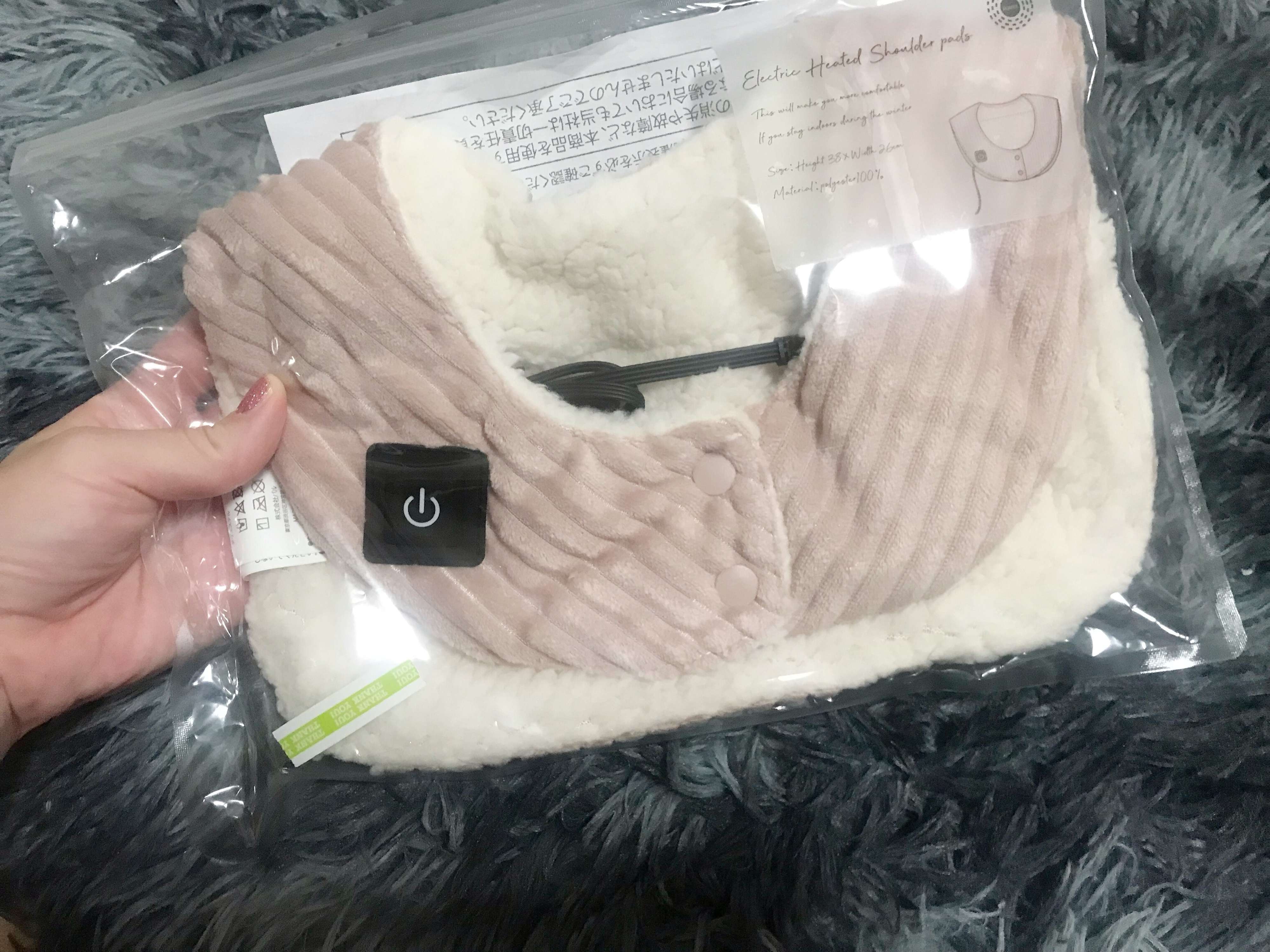 内側がふわふわとした生地でそれだけで温かいのですが、この肩パッドは電熱線入りなので電源を入れればじんわりとホッカイロのような温かさを体感することが出来ます。