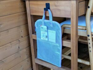 ここでも活躍するのが防水バッグ。付属のストラップを使ってヘッドレストに取りつけたら、濡れた傘を直接入れるだけ。4本程度なら余裕で入ります。筒状で口が大きく開くので、子どもでも簡単に出し入れできるのにくわえて、水を捨てたり乾かしたりといったお手入れが簡単なのもうれしいポイント。