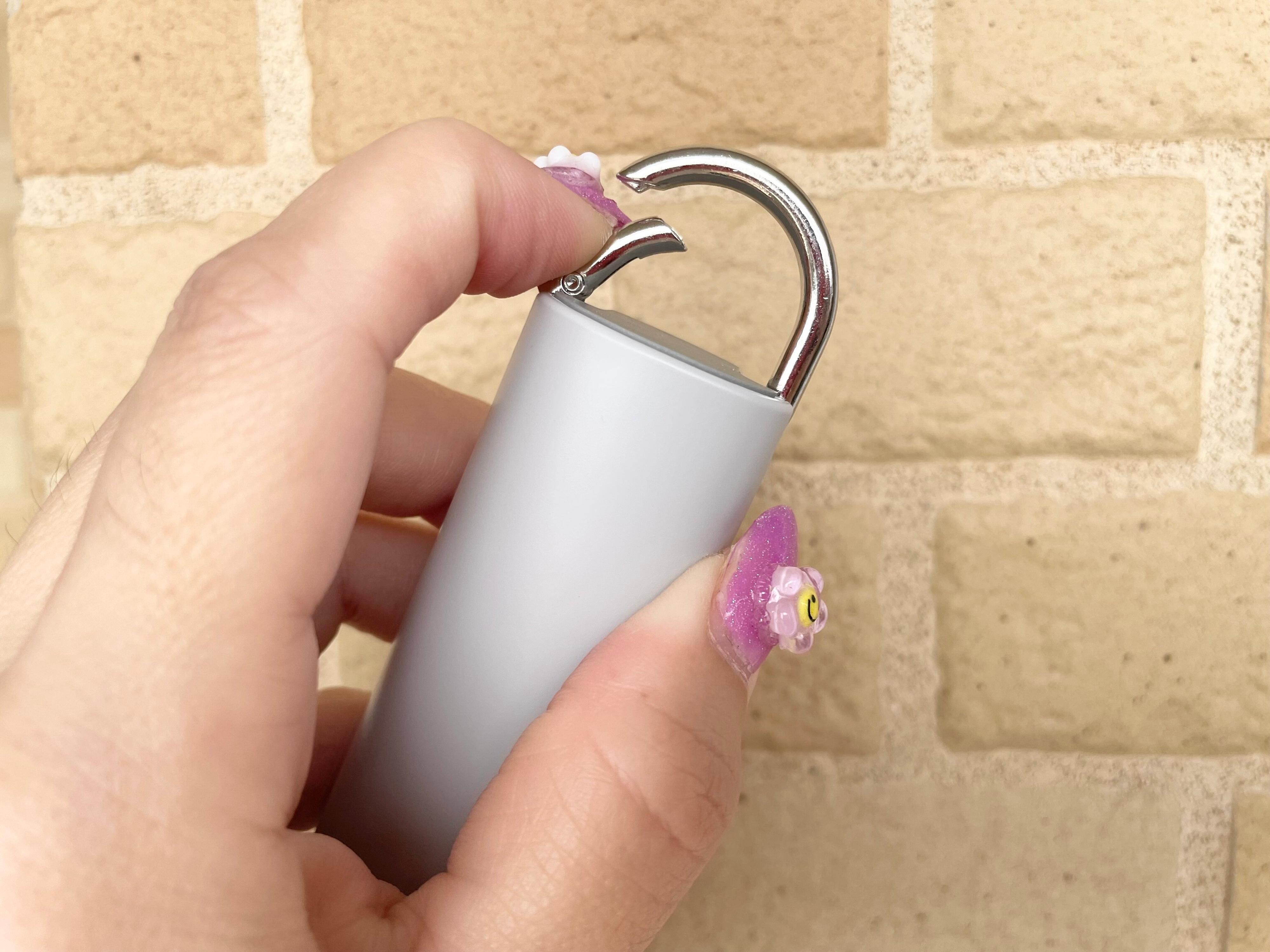 「ペルチェ付き2重構造ハンディファン」はカラビナ付きなので、バッグチャームのように取り付ける事が可能です。バッグの中にしまわなくても持ち運べるので、小さめのバッグの時も問題なし♪