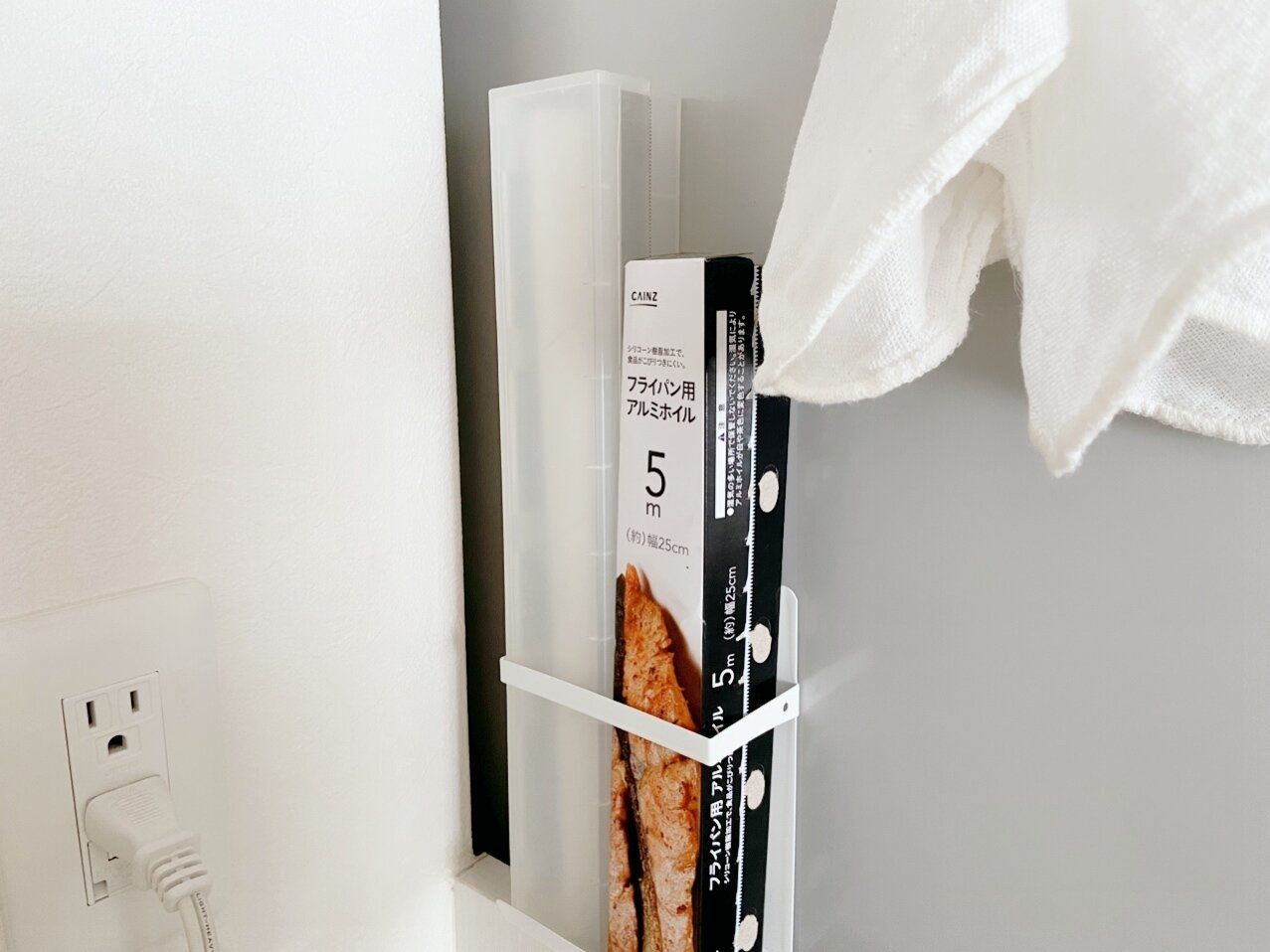 わが家では冷蔵庫横にペタッと貼り付けて、毎日使うラップとアルミホイルを収納しています。