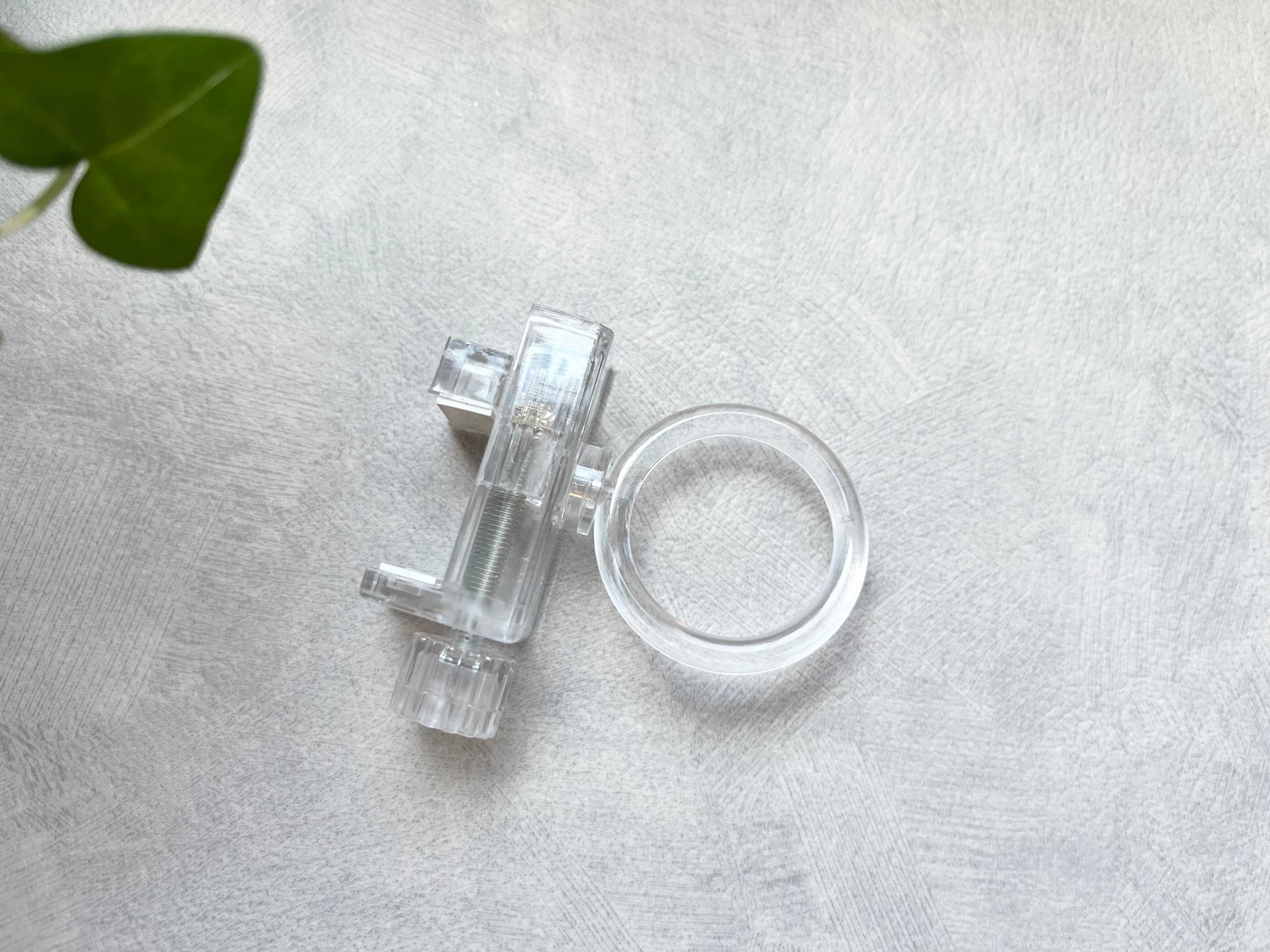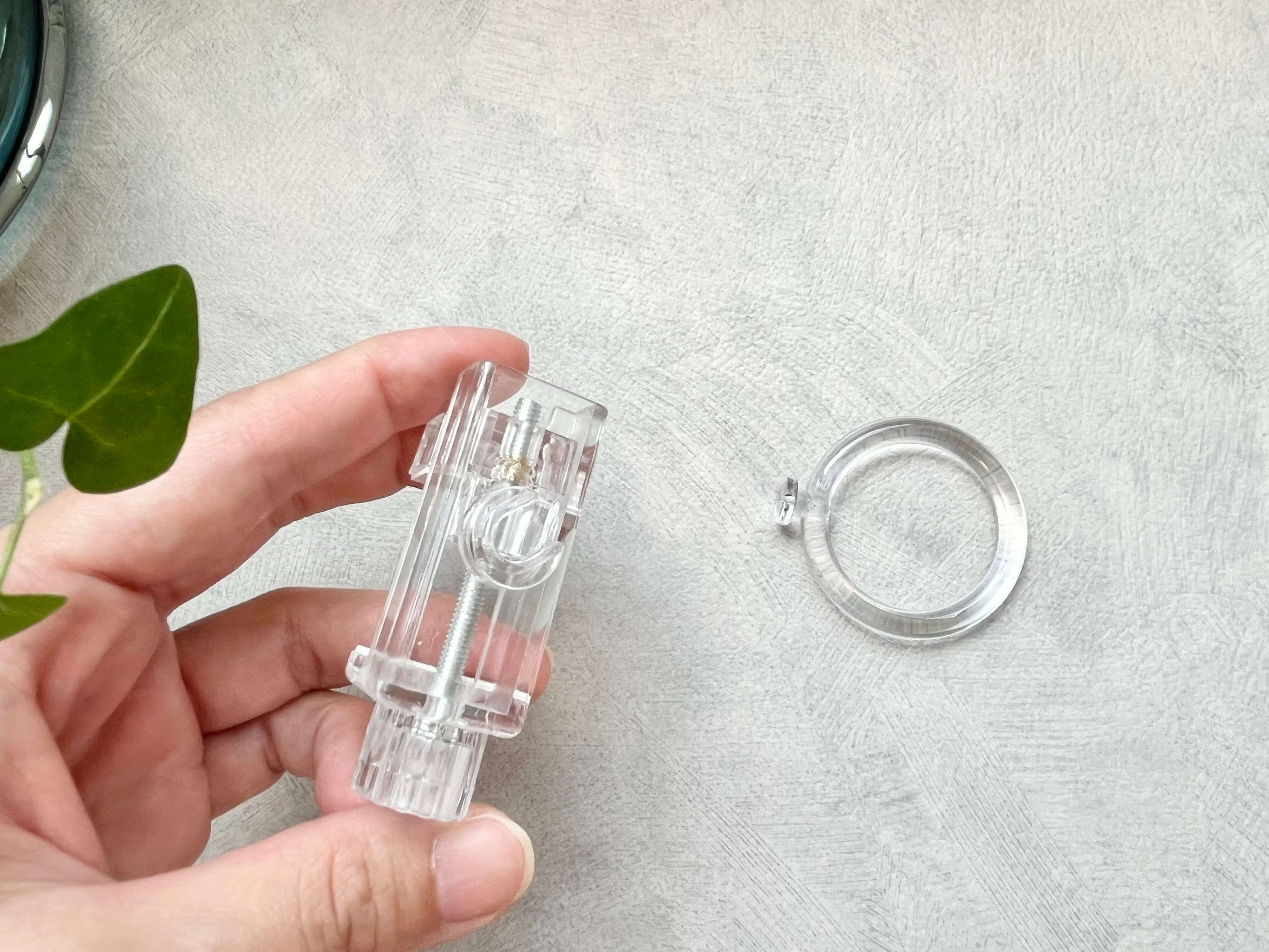 最後に、本体にリングフックを差し込んだら取りつけ完了です。リングフックは360度回転するので、お好きな向きに調節できますよ。