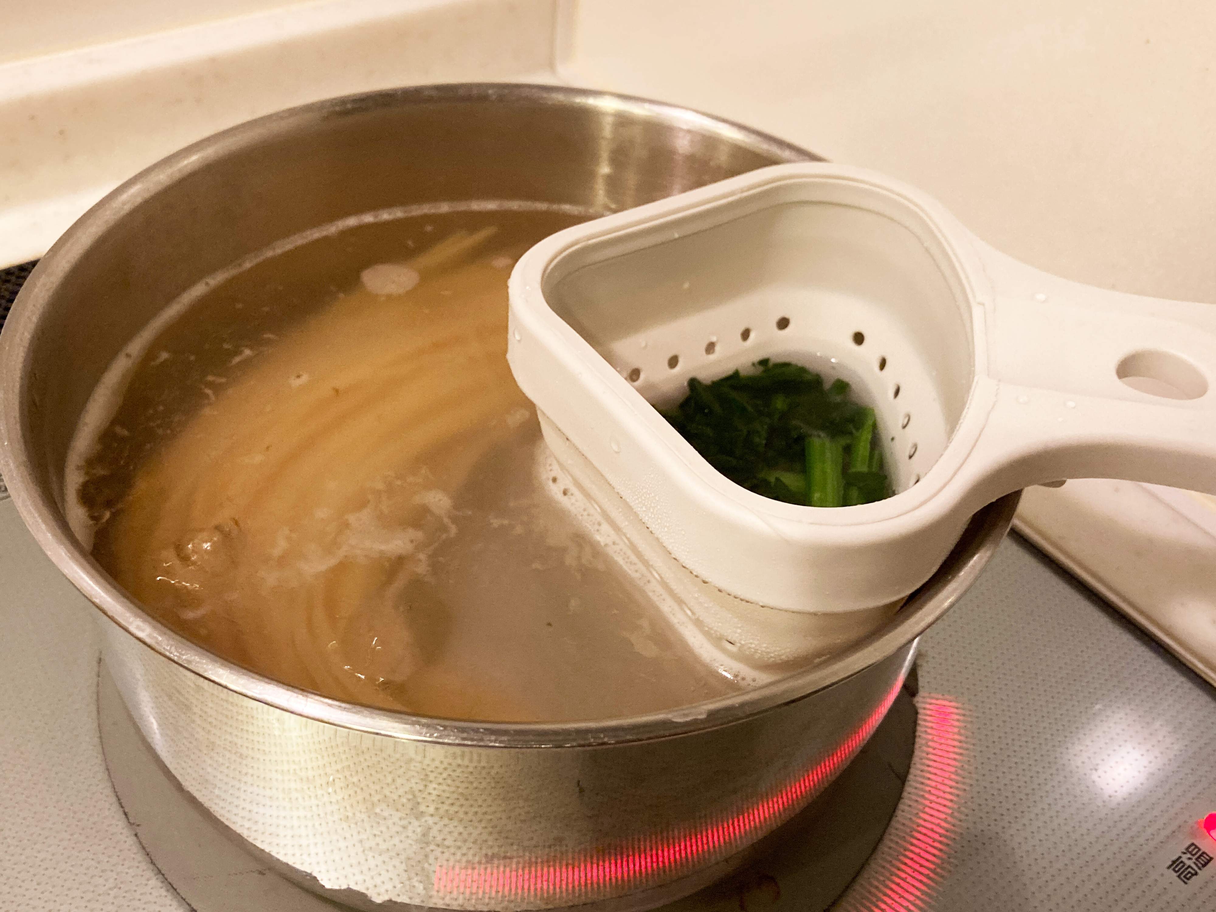 そんなときに「シリコン折りたたみ茹でザル」がとっても便利です!