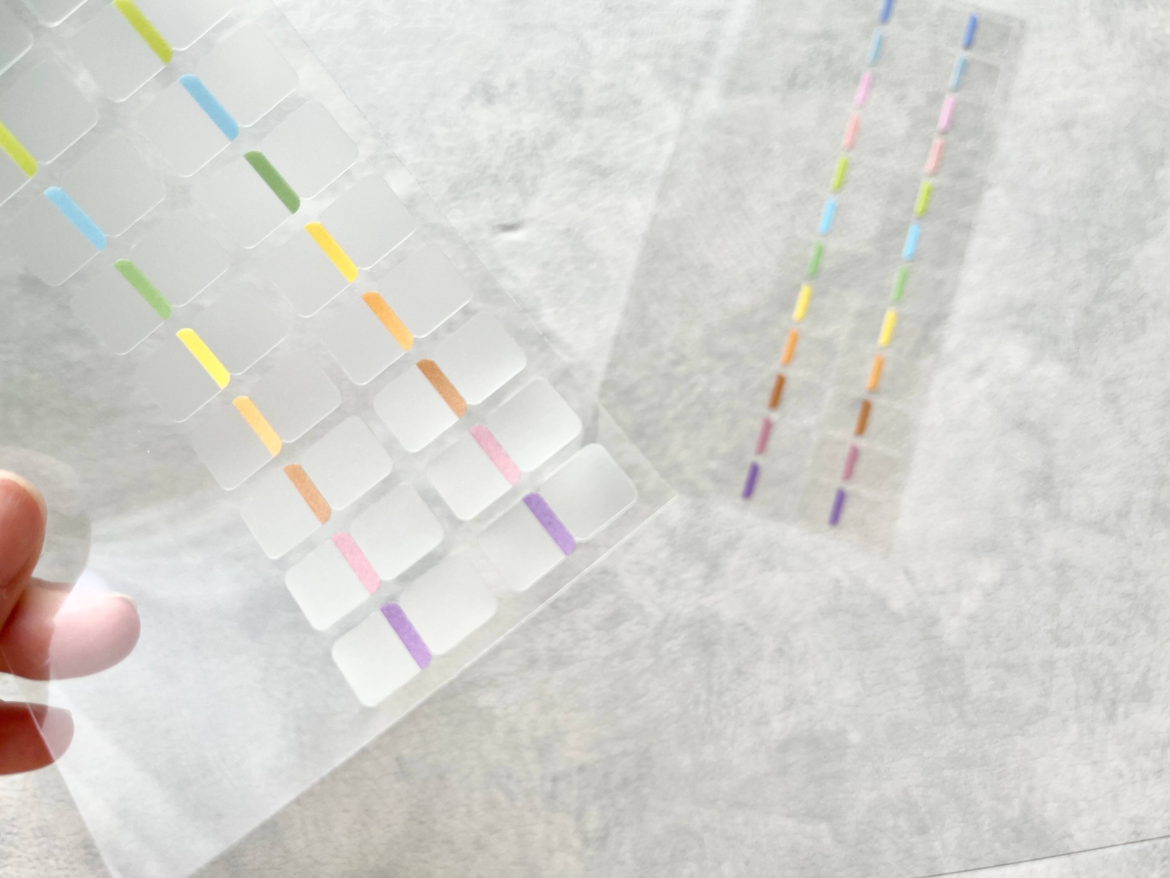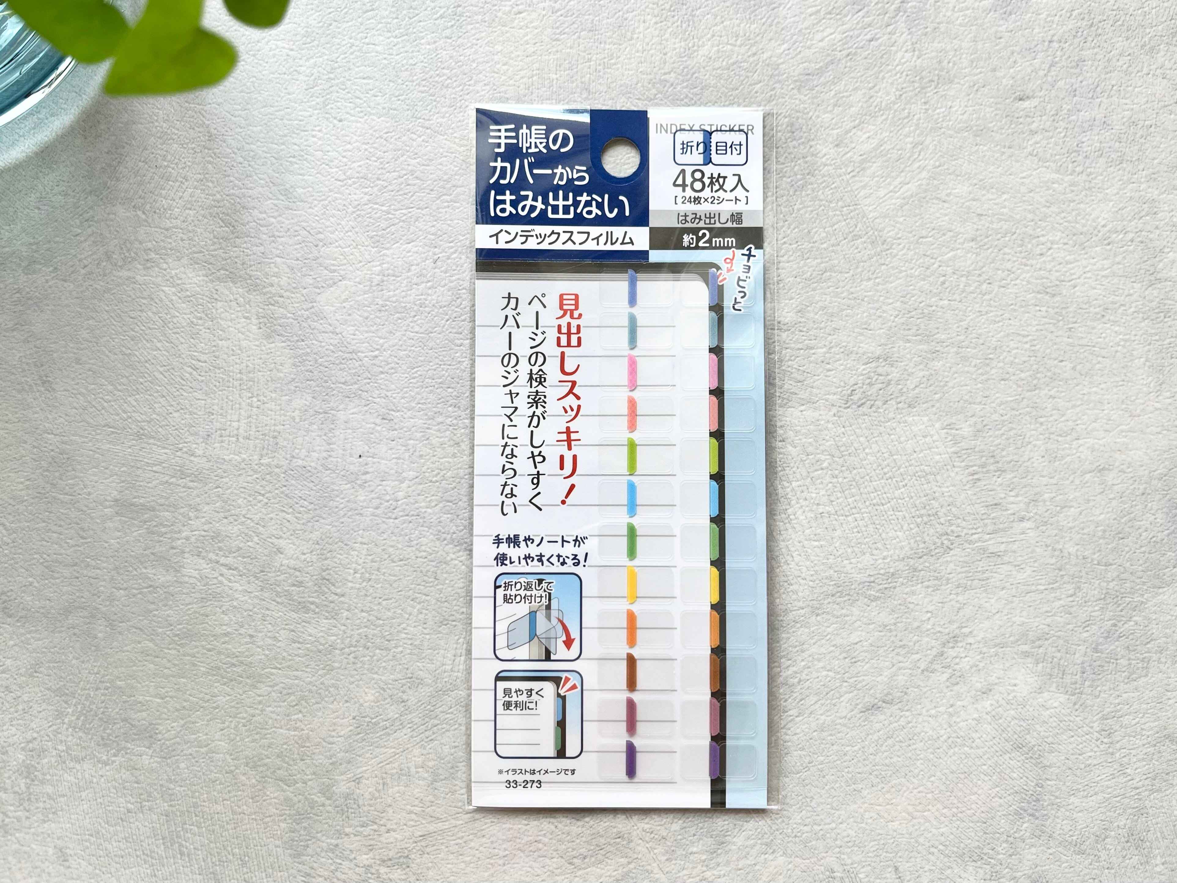 セリアの「手帳からはみ出さないインデックスフィルム 48枚入」は、本来大きいサイズであるべきインデックスシールをあえて小さくした、ありそうでなかった画期的なインデックスシールです。