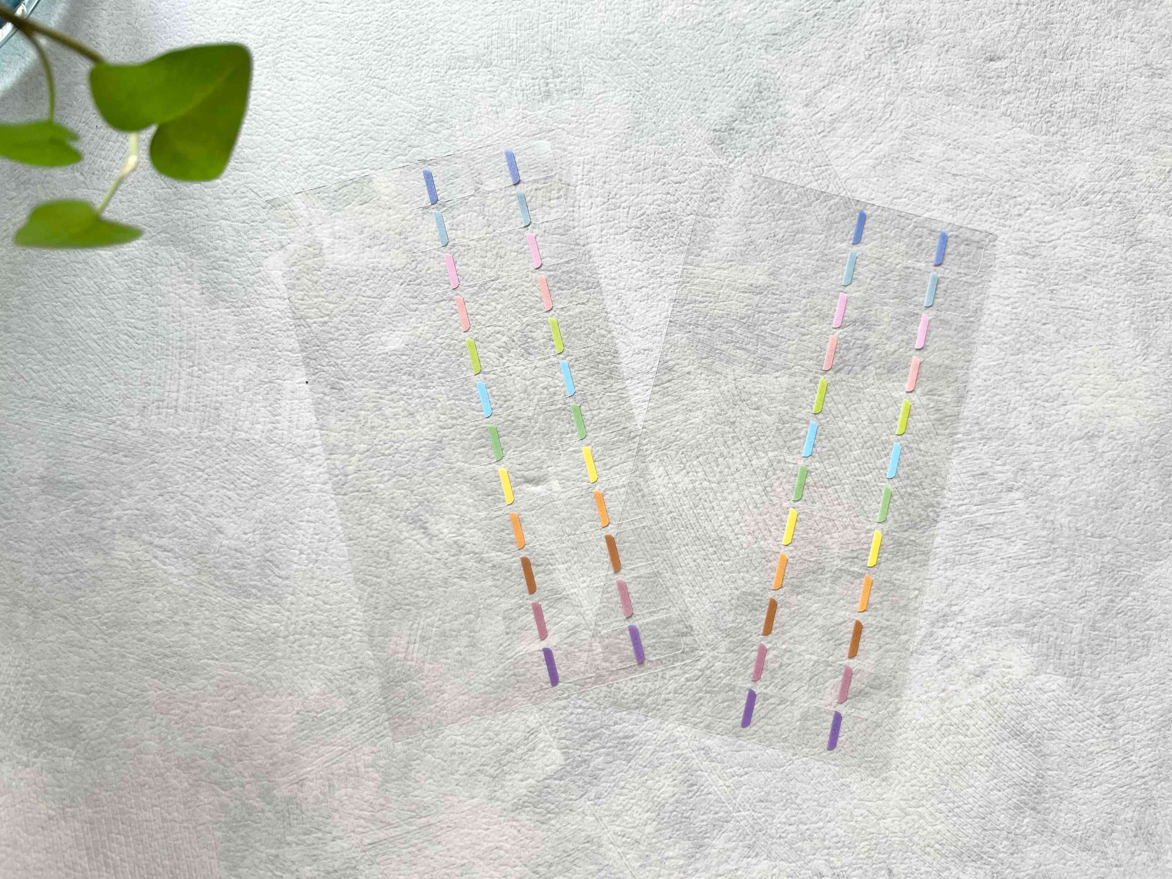 ご紹介するのは、セリアの「手帳からはみ出さないインデックスフィルム 48枚入」。そもそもインデックスシールは目立たせるためのものなので、大きいサイズのものが一般的。しかし、時と場合によっては、むしろ大きくなくてもいい時もありますよね?こちらの商品は、そんな時に役立つ、ちょっと珍しい小さいサイズのインデックスシールなんですよ。