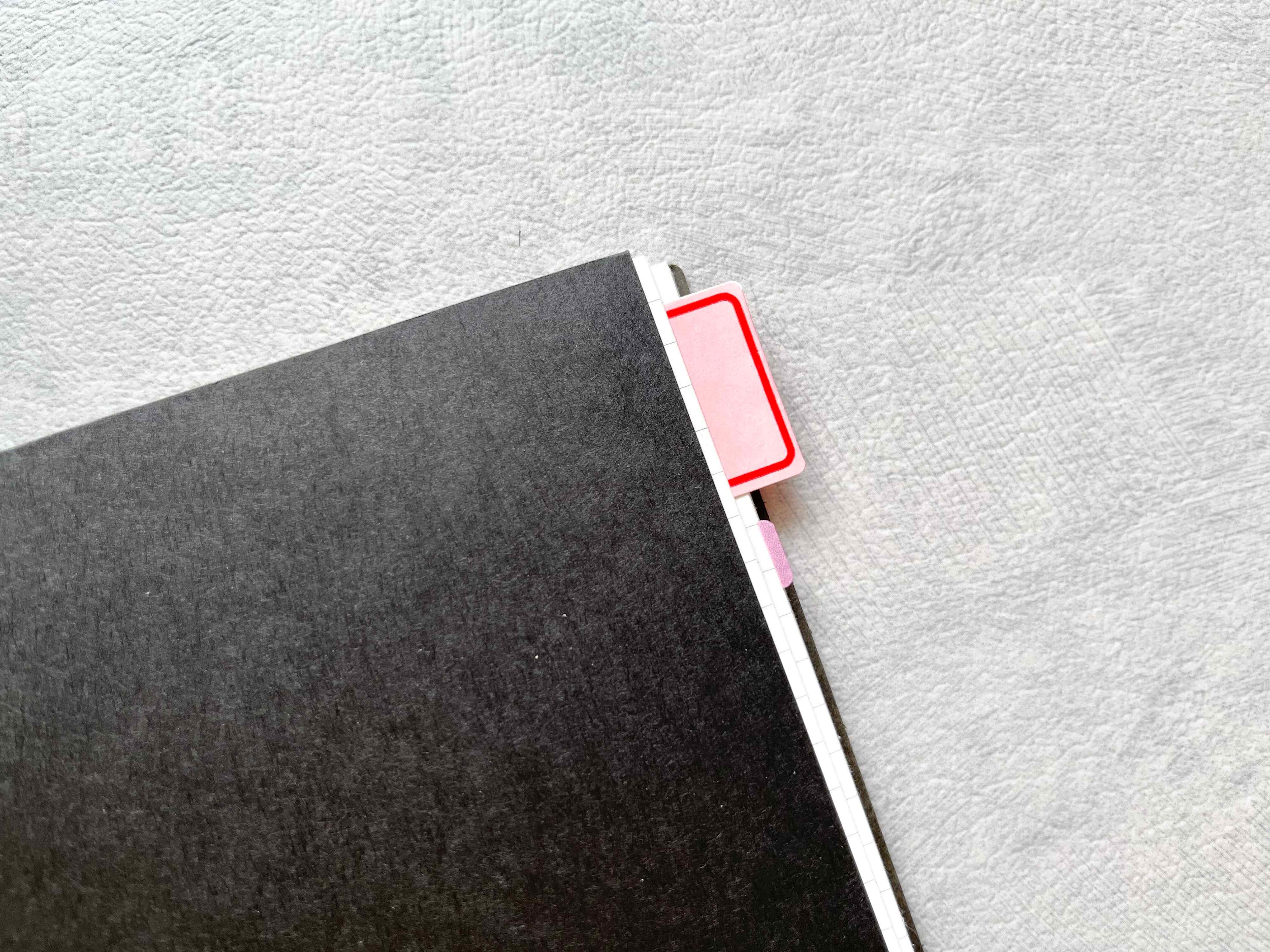 表紙を閉じてしまえば見えませんが、少しずらして横から見てみるとしっかりインデックスシールの役割を果たしてくれます。