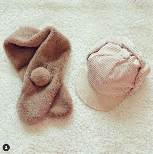 ベージュカラーが今風!あったかマフラーと帽子
