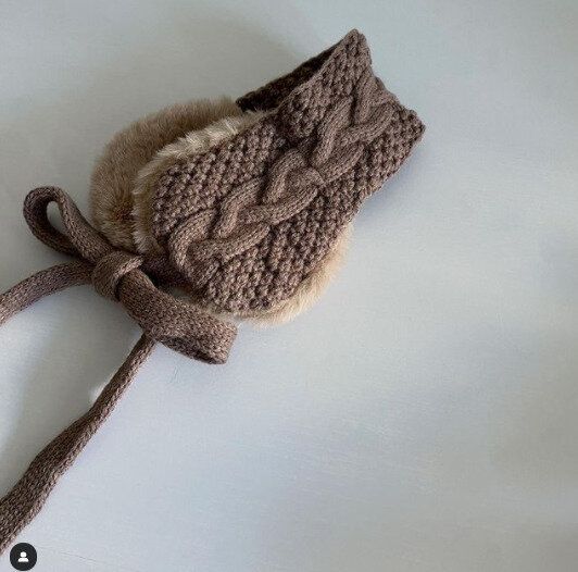 上品なベージュカラーがおしゃれなクマさんの帽子や手袋、スヌードなどはおそろいにするのもかわいいですね。ふわふわしていてあたたかそう!