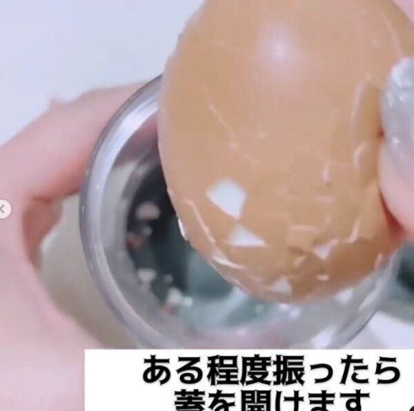 「これ便利!」と思わず言ってしまうアイテムがダイソー「たまごの殻むき」です。使い方は簡単で、ゆで卵を容器に入れてふたを閉めたら、上下横にしばらく振るだけ。卵の表面全体に細かいひびが入れば、取り出してOKです。水に濡らしながら卵の殻をむくとするんと気持ちよく取れます。このアイテムがあれば、表面がガタガタになったり、黄身までぽろっと取れたりすることもなくなるでしょう。まさに面倒な卵の殻むきの救世主となるアイテムです。
