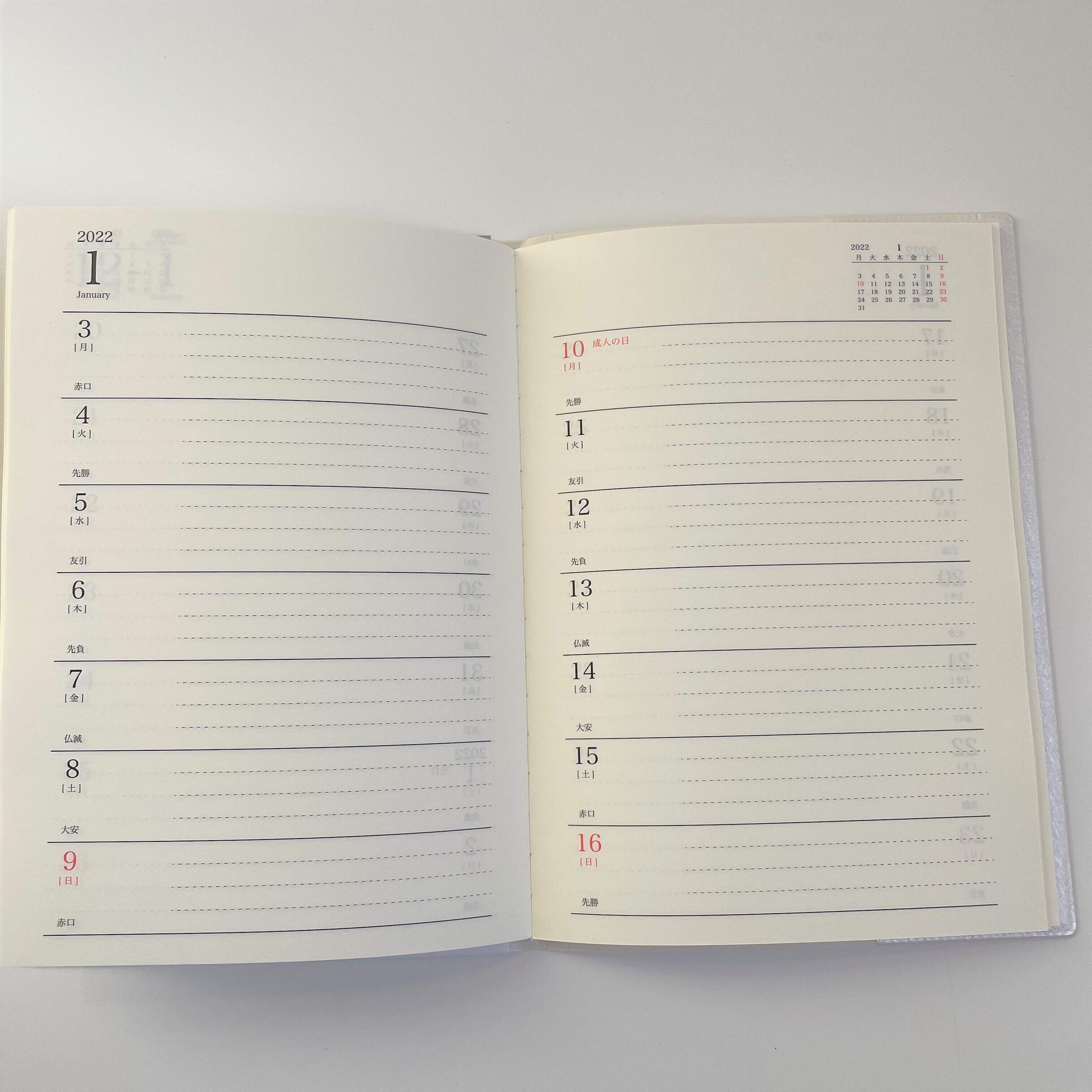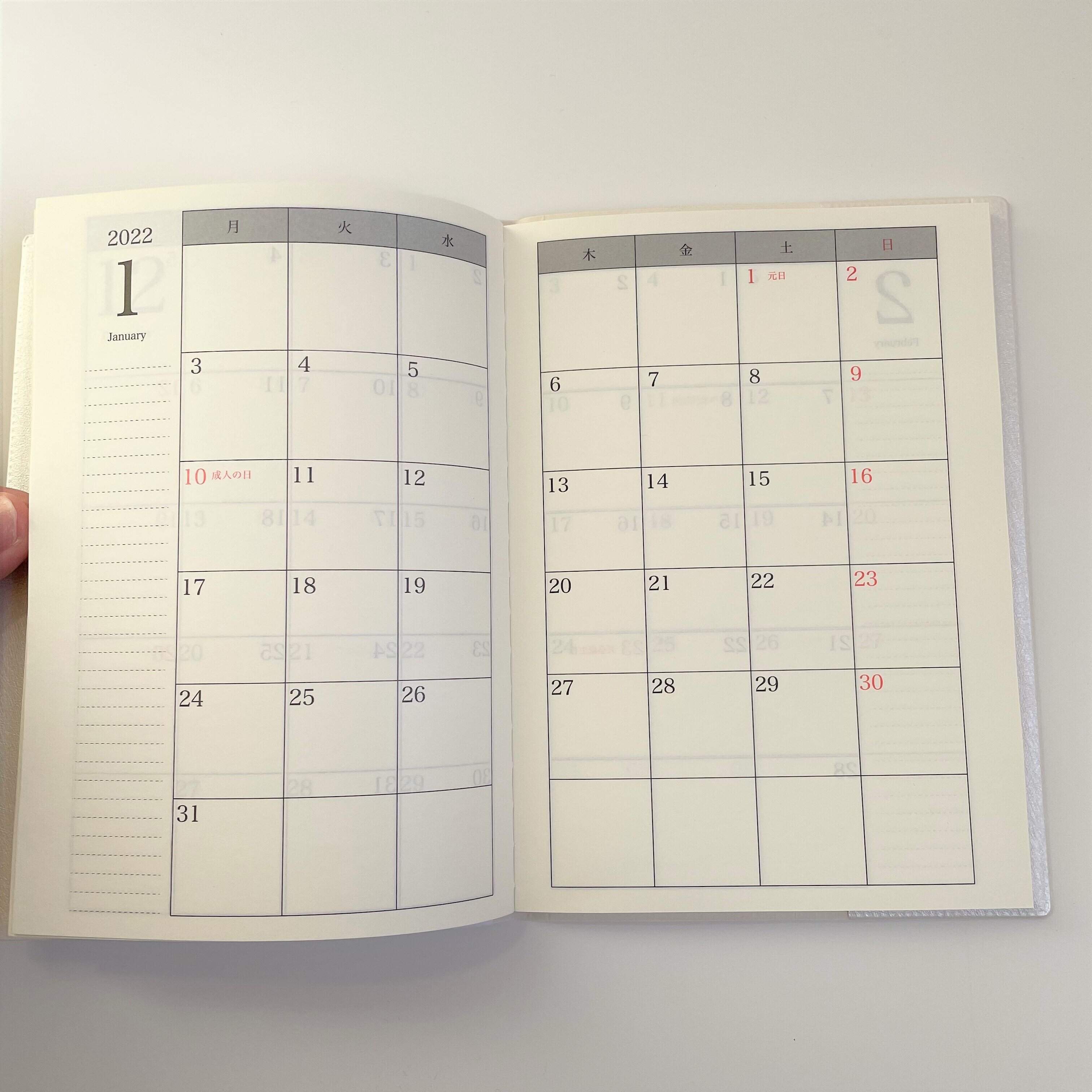 また、B6サイズなのでカバンにも入れやすいのが特徴。多すぎると持ち運びに困りますし、小さすぎると書き込みが難しいことも…。B6のサイズ感は手帳として私にぴったりです。