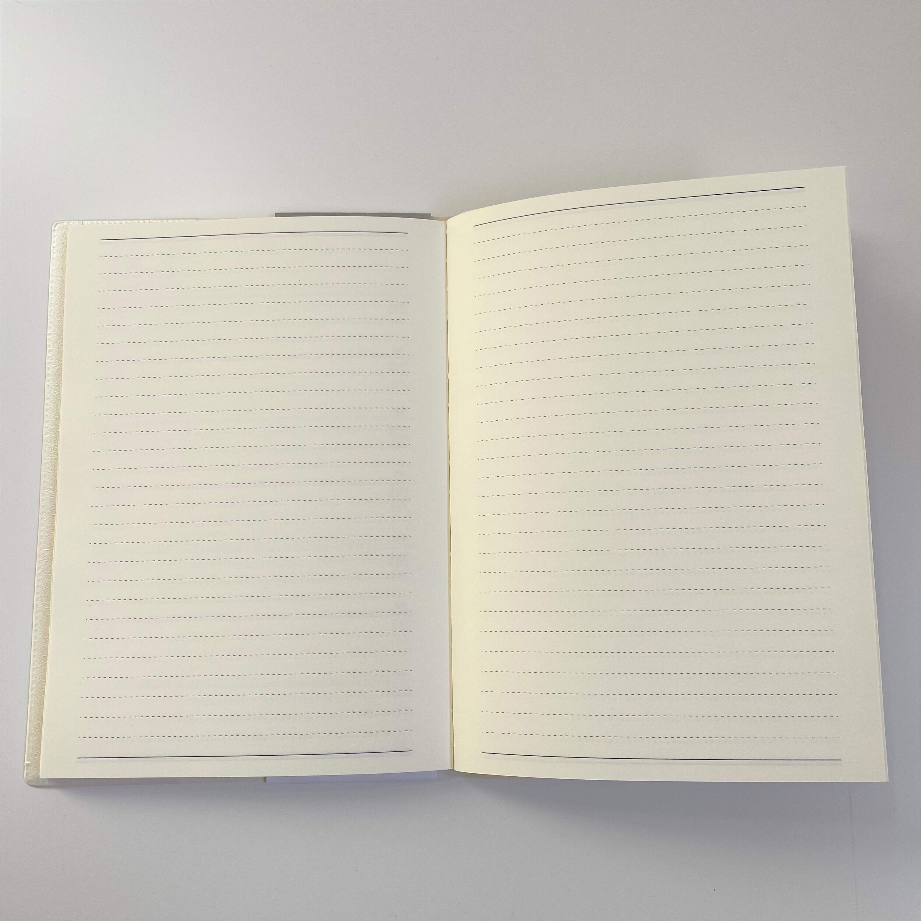今回私が購入したのは、白いクロスのような手触りの手帳。金色の型押しと相まって、高級感が感じられます。