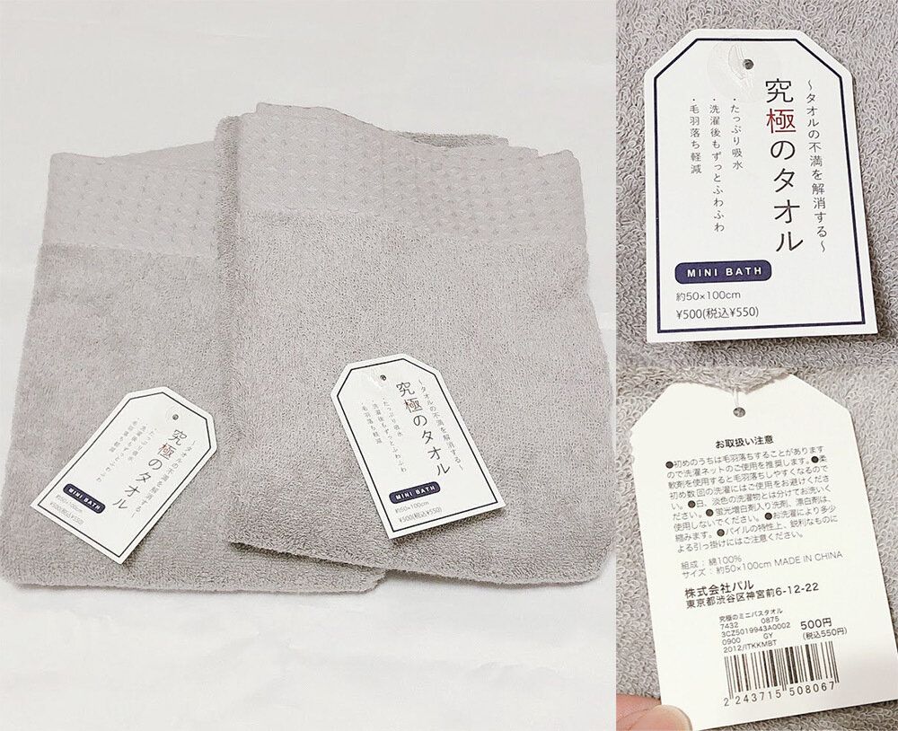 前回も3COINSのミニバスタオルだったのですが、今回は「究極のタオル」という商品です。