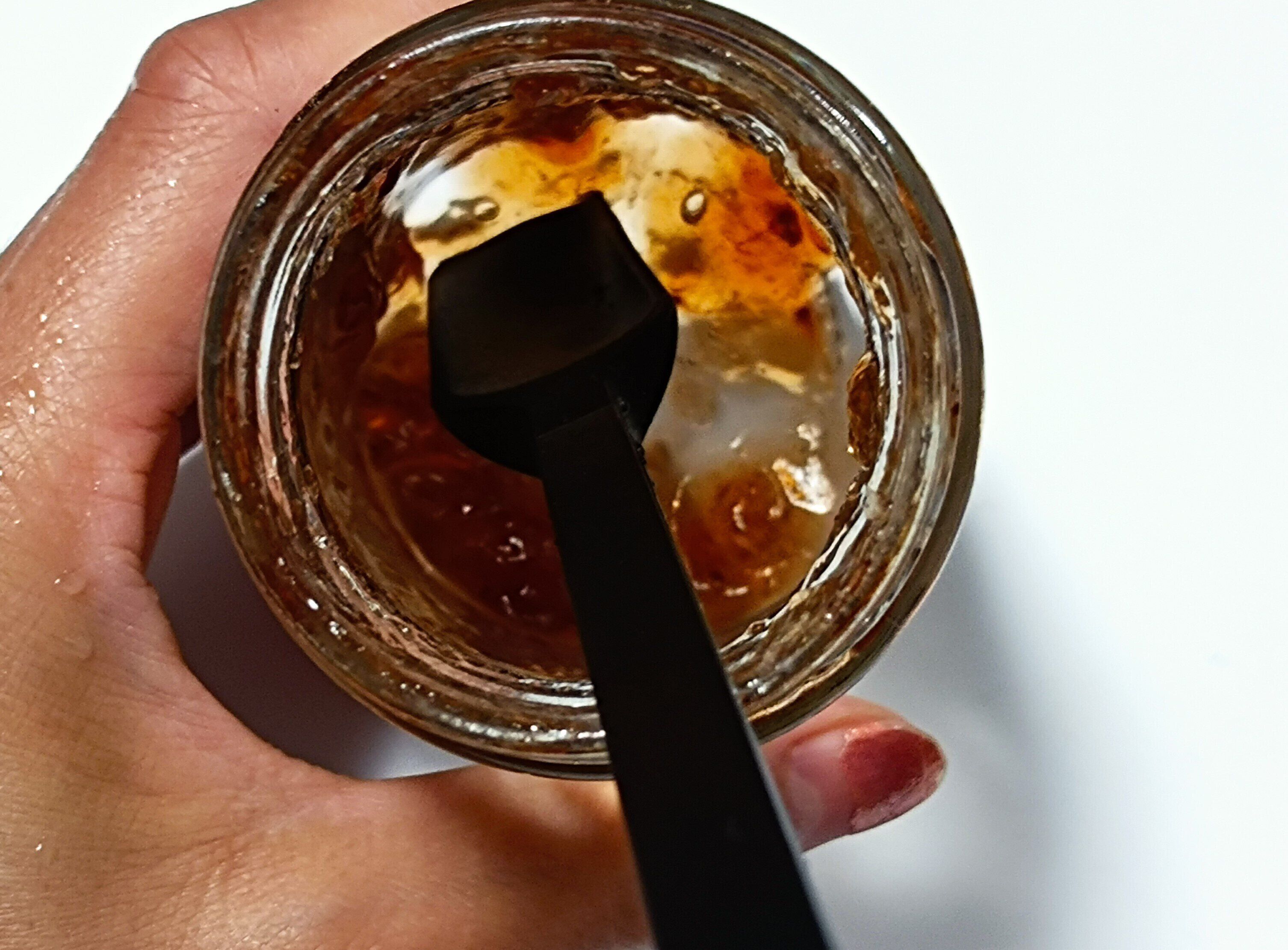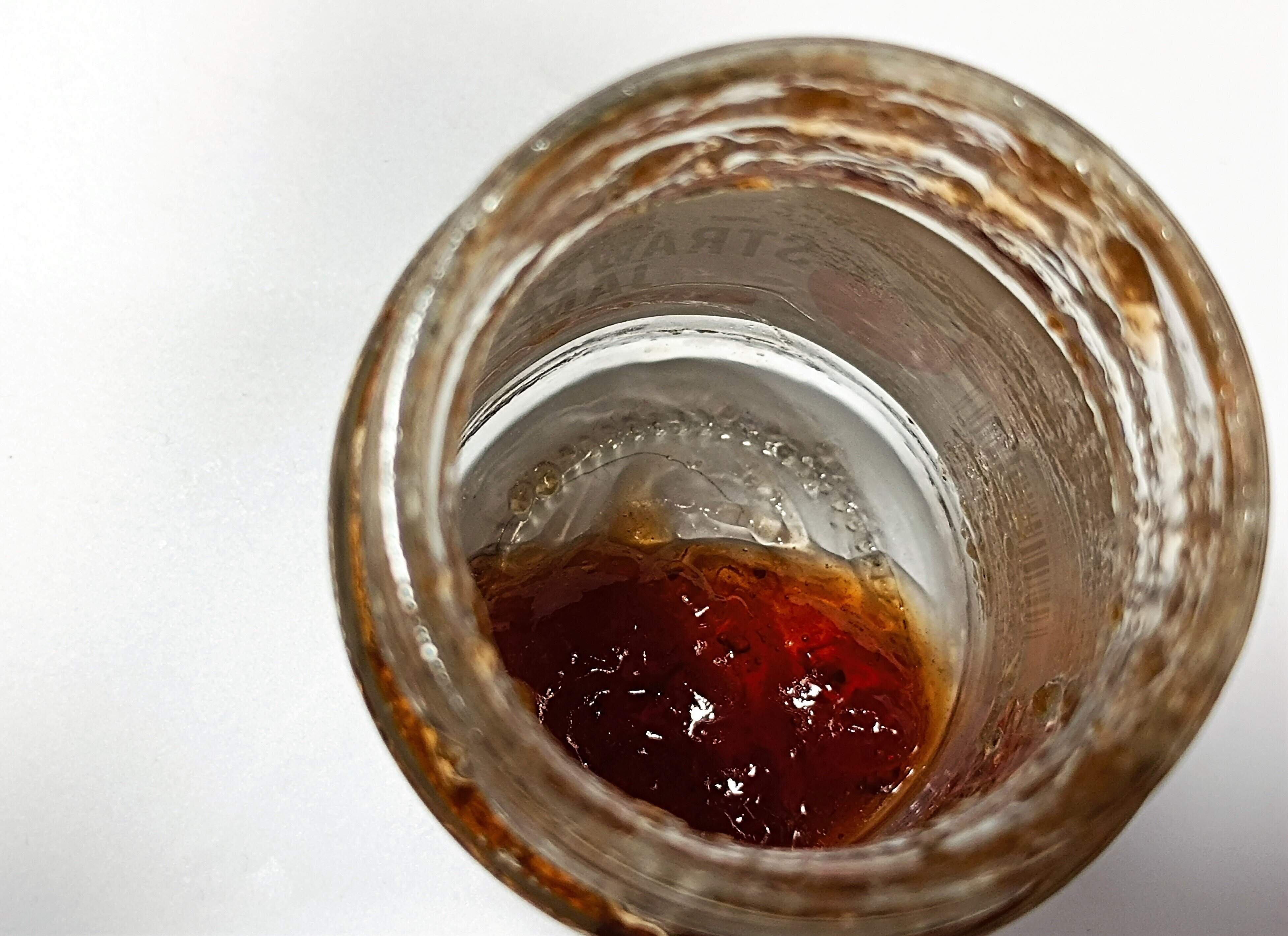 このように残り少なくなったジャムの瓶の中身を取り出そうとすると、たくさんのジャムがくっついてしまっています。ジャムを取りきることはなかなか難しいですよね。