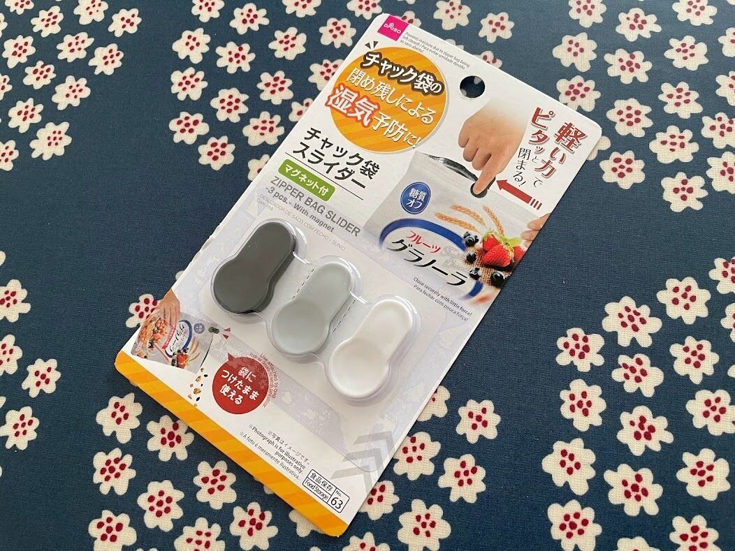 そんな心配を解消してくれるキッチングッズがあります。ダイソーの『チャック袋スライダーマグネット付き』です。ブラック・ホワイト・グレーのモノトーンカラー3個入り。