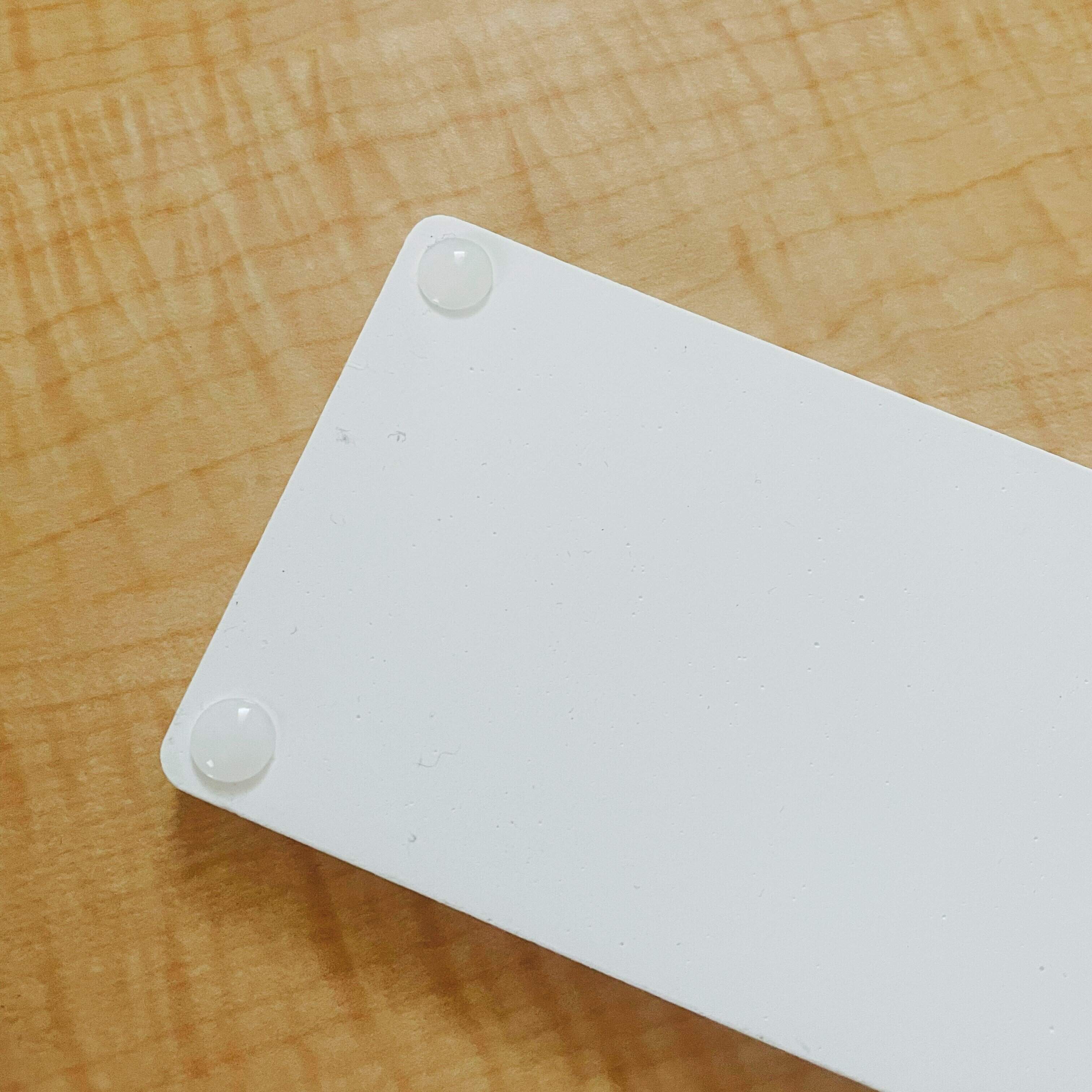 クッションゴムを貼り付けて置いてみたところ、珪藻土トレーが台面に直接触れないのでキズを予防することに成功!