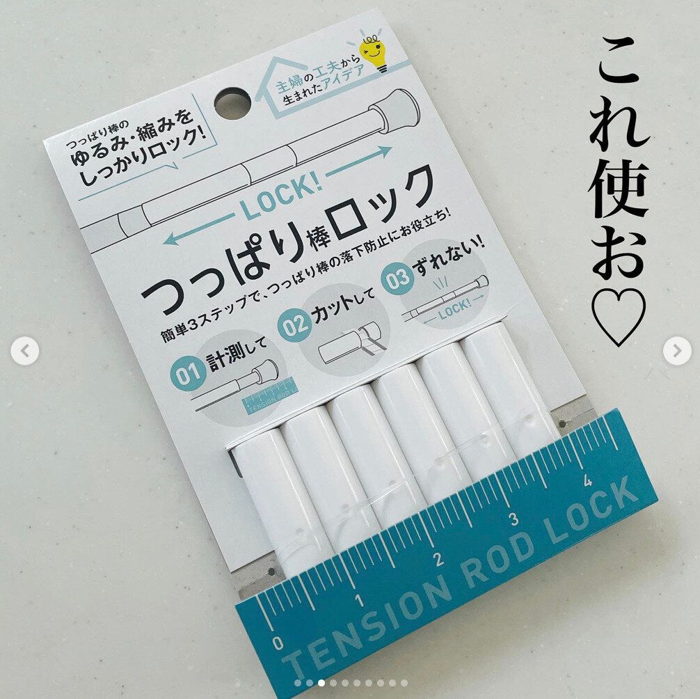 主婦の工夫から生まれたアイデア商品。つっぱり棒がゆるんでしまったり、縮んでしまったりするのを防いでくれる商品です。延長した部分は棒が一部細くなっていますよね。その長さを測って、この商品をカットしてはめるだけ!6本も入っているのでいろんな長さに対応できそうです。