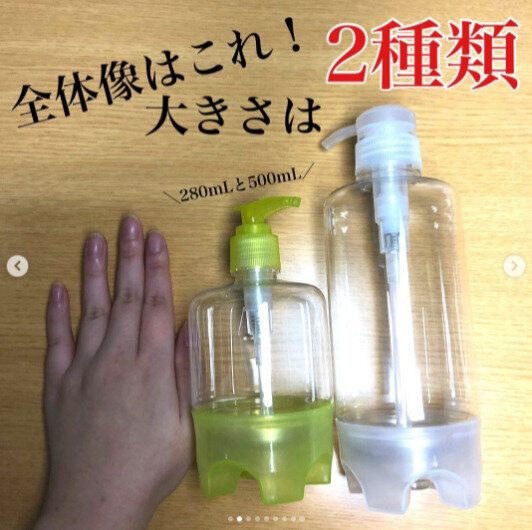 ポンプボトルは最後まで使いきれない、というストレスがありますよね。こちらの「残さず使えるポンプボトル」は、その名の通り、最後まで使い切ることができます。大きいサイズと小さいサイズがあるので、ハンドソープやシャンプーを入れるのに使えそうですね。