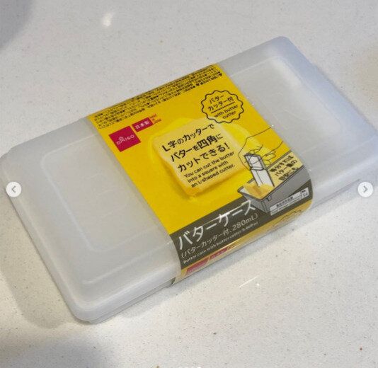 ダイソーで人気のバターケース。L字のカッターがついているので、バターを四角にカットすることができます。また、バターを丸ごと入れることができるのでとても便利と評判です。