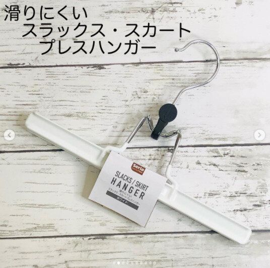 スラックスやスカートをハンガーにかけると、滑り落ちてしまったり、形が崩れてしまったりしがちですよね。こちらのプレスハンガーならそんな悩みを解消できちゃいますよ。