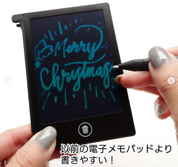 以前SNSでも話題となった「8.5インチ電子メモパッド」のミニ版がこのたび登場!こちらの「4.4インチ電子メモパッド」(330円)はさらに、使いやすくなっていると評判。手のひらサイズでコンパクとになったため、メモ代わりに持ち歩きが可能。そのうえ、太字・細字も筆圧によりすらすらと書けます。スタイラスペンが付属していたり、書き込みロックボタンやワンプッシュで消去できる機能などは大きいものと同じです。