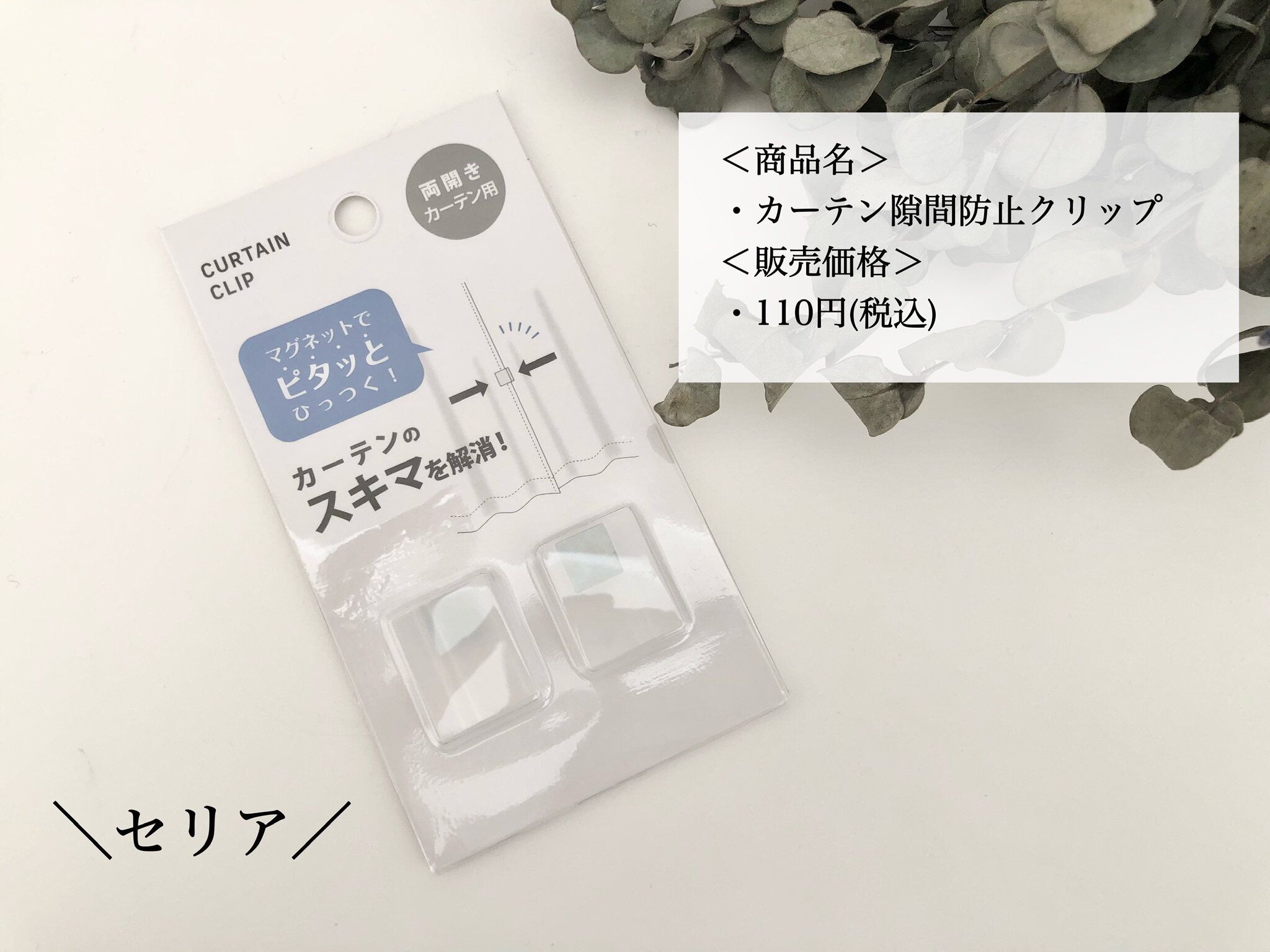 セリアの「カーテンの隙間防止クリップ」をご紹介しました。