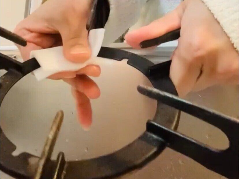 シート状なので、拭きとるように五徳に滑らせていけば五徳の隅々まで洗えますよ。