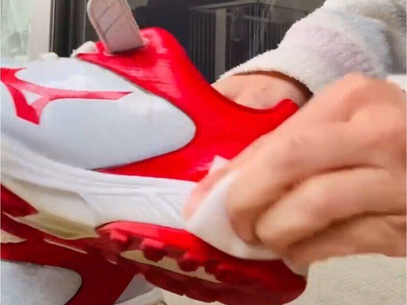 スニーカーのソール部分は土で茶色くなったり、黒くなりやすいですよね。ブラシでゴシゴシ擦るよりもメラミンスポンジで擦った方が力任せにしなくていいので、靴も傷めません。