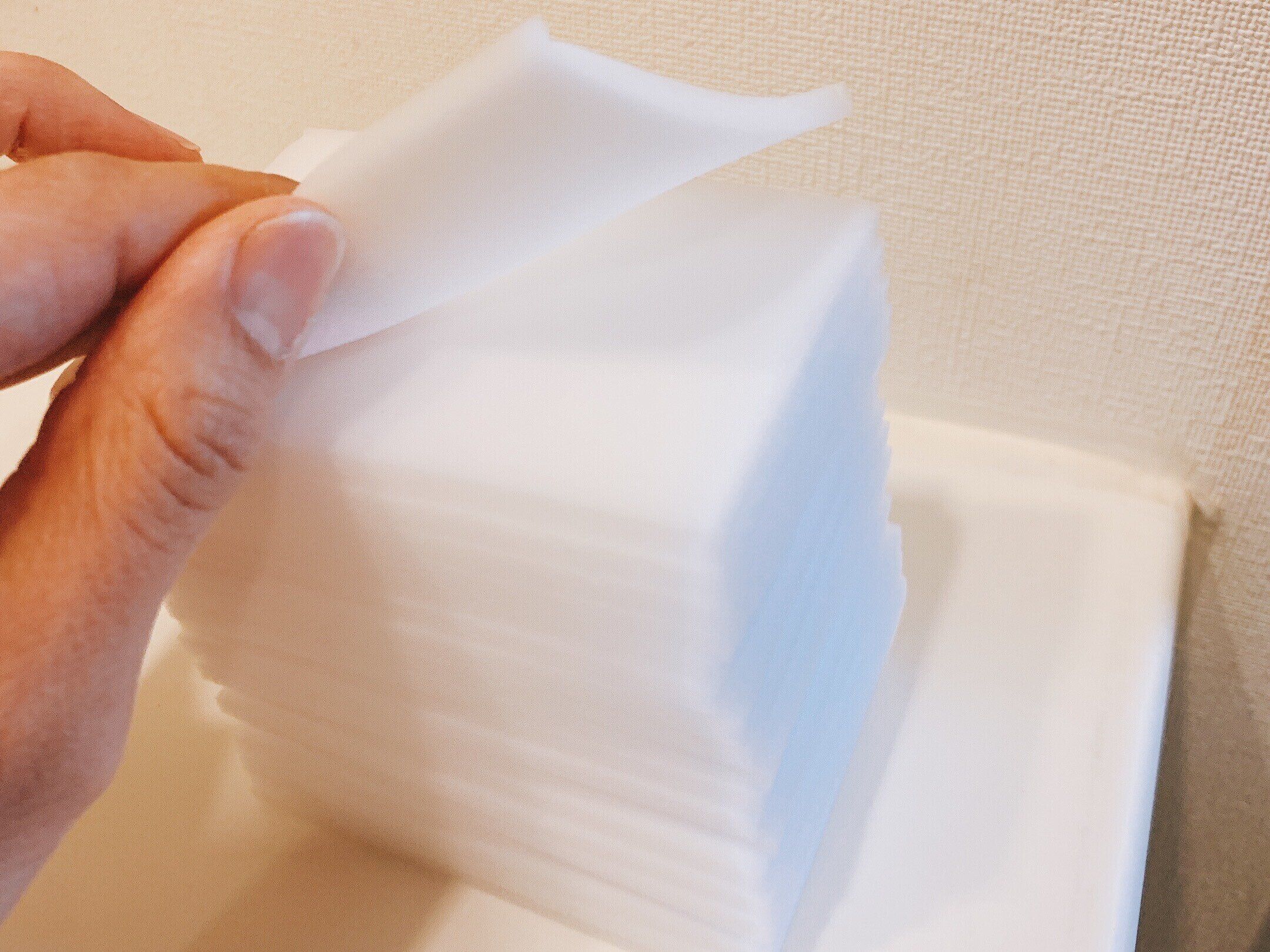 同じメラニンスポンジでもサイコロ状の方がいい場合、大判サイズがいい場合、シート状がいい場合とさまざまです。大判サイズを購入して必要な大きさに切って使うのもいいですが、シート状まで薄く切るのはなかなか難しいです。切る手間も省けて、この薄さが助かることもありますので、是非ダイソーの「メラミンスポンジ シートタイプ」を活用してみて下さい。