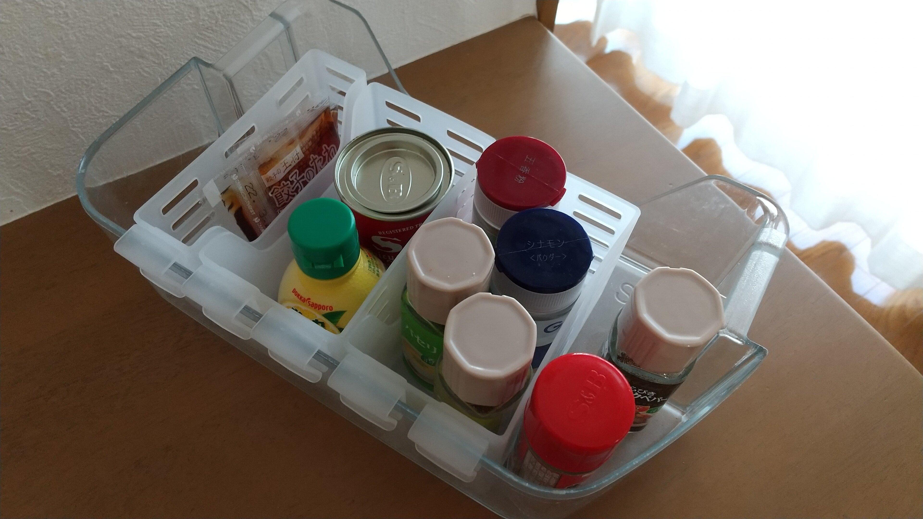 ここにはスパイスなど小さいサイズの調味料を無造作に入れていましたが、ケースを使うことで分類ができてスッキリに!