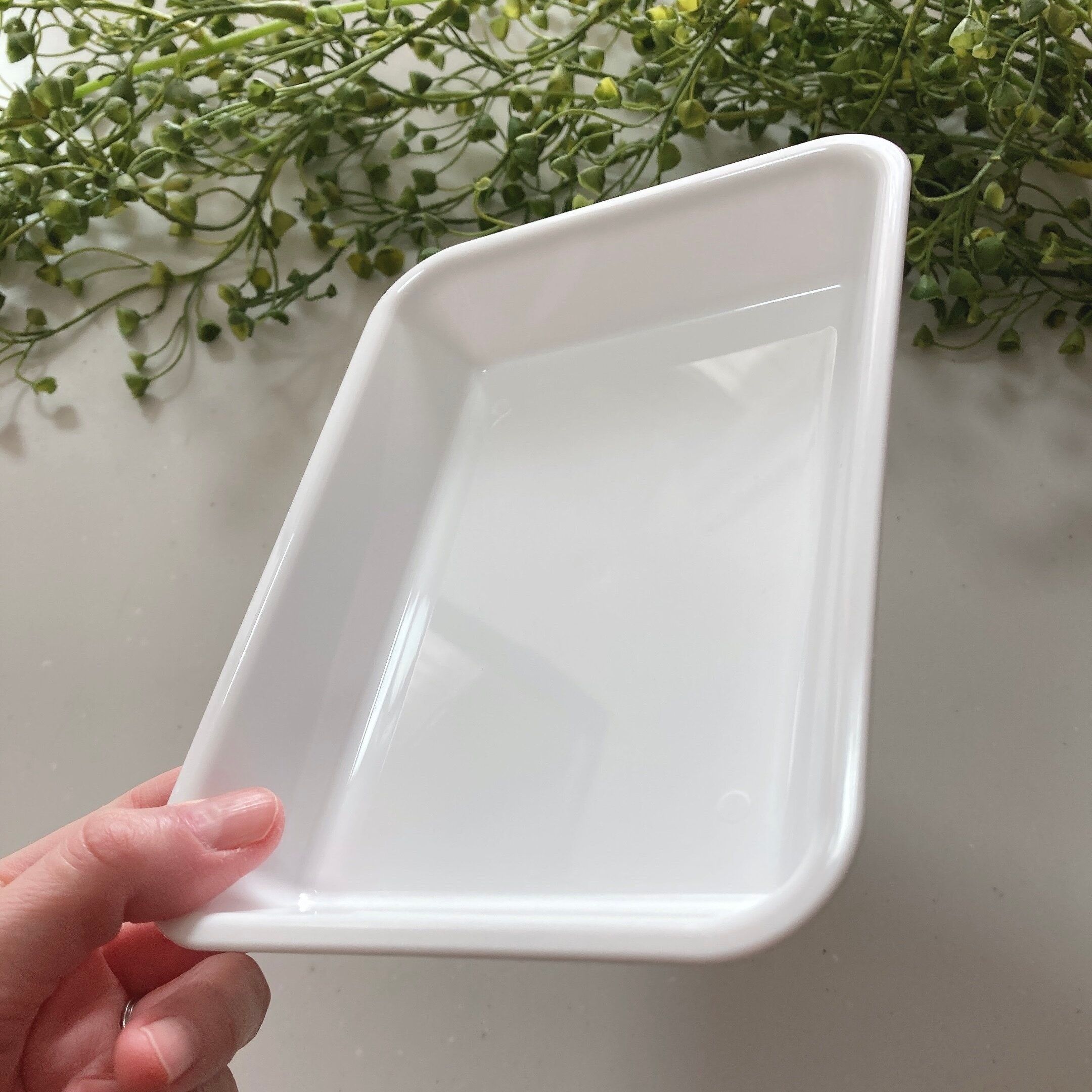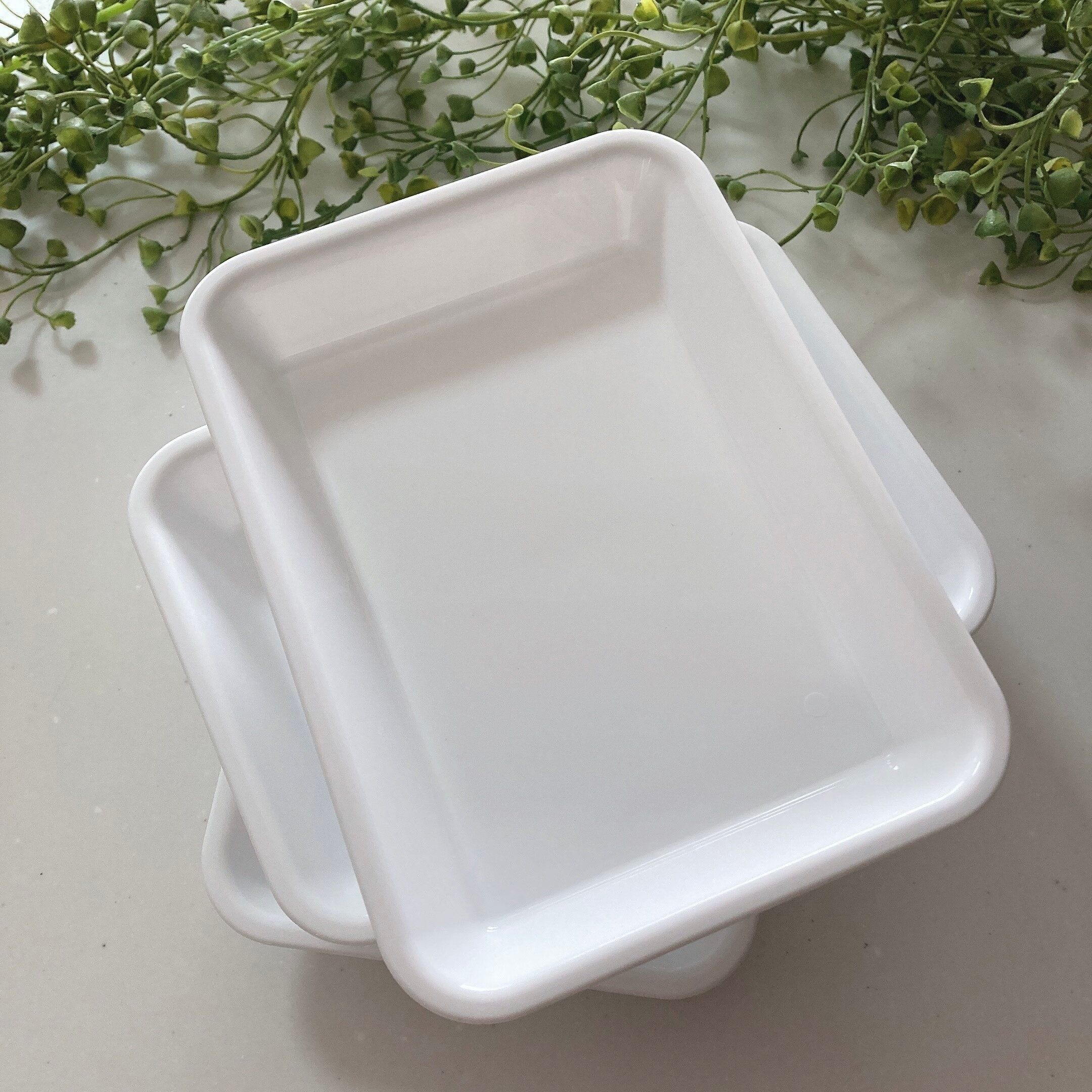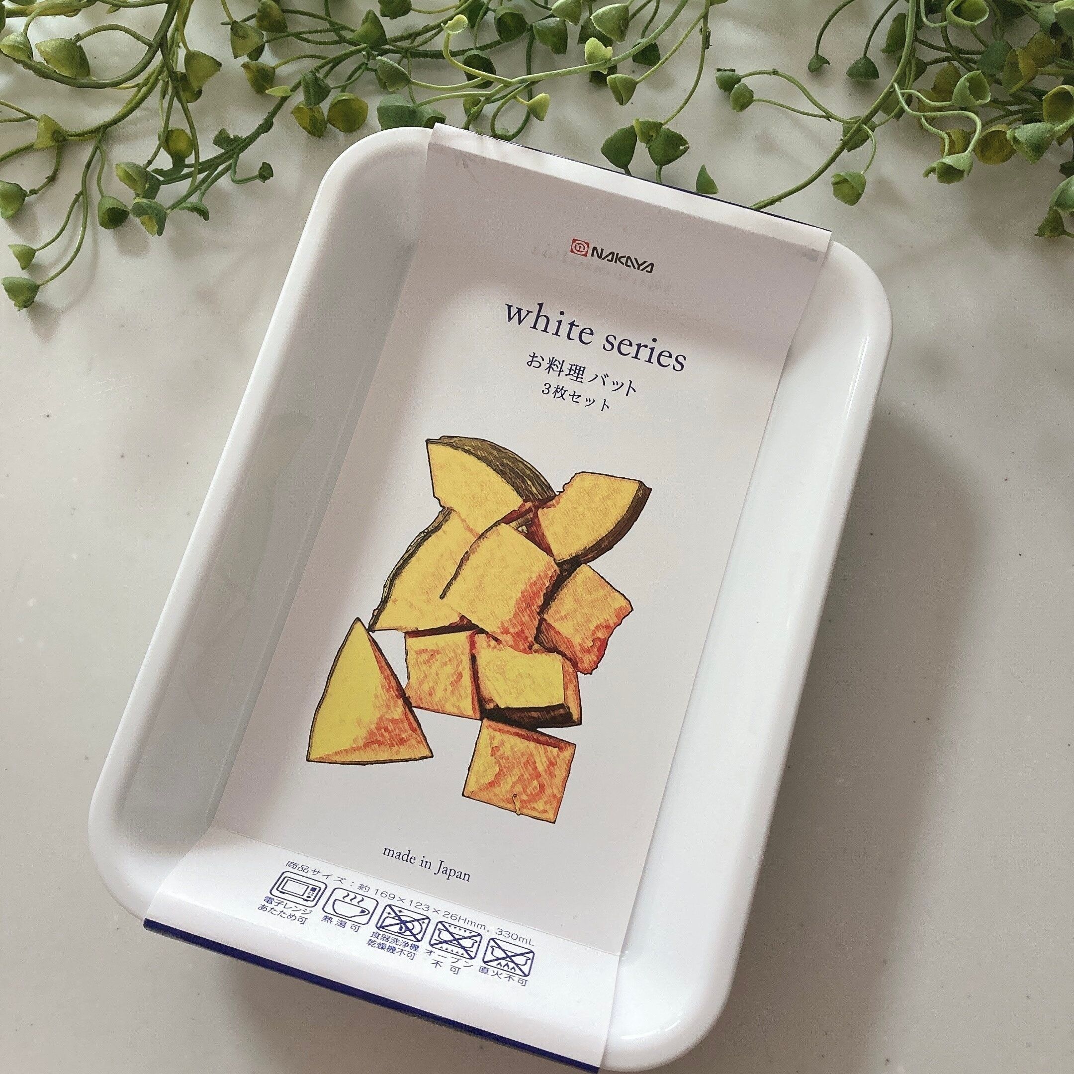 真っ白でシンプルなお料理バッド。3枚セットで110円は嬉しいですね。