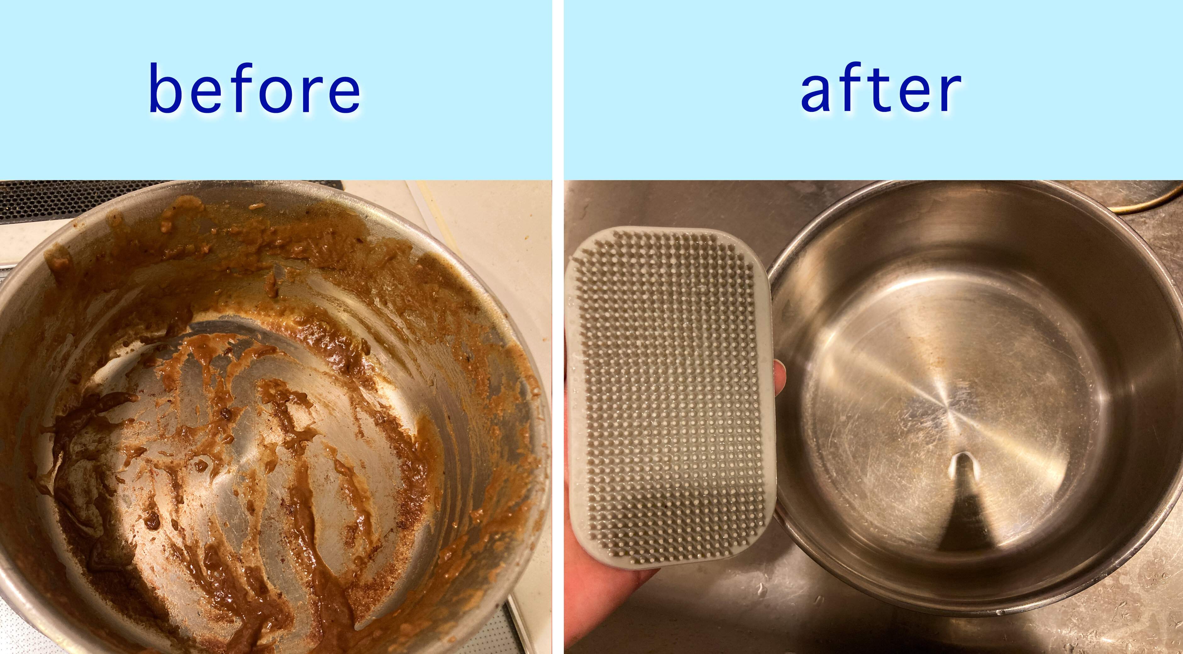 鍋もシリコーンブラシも油汚れを感じることなくスッキリ綺麗に落ちていたのでびっくりです!