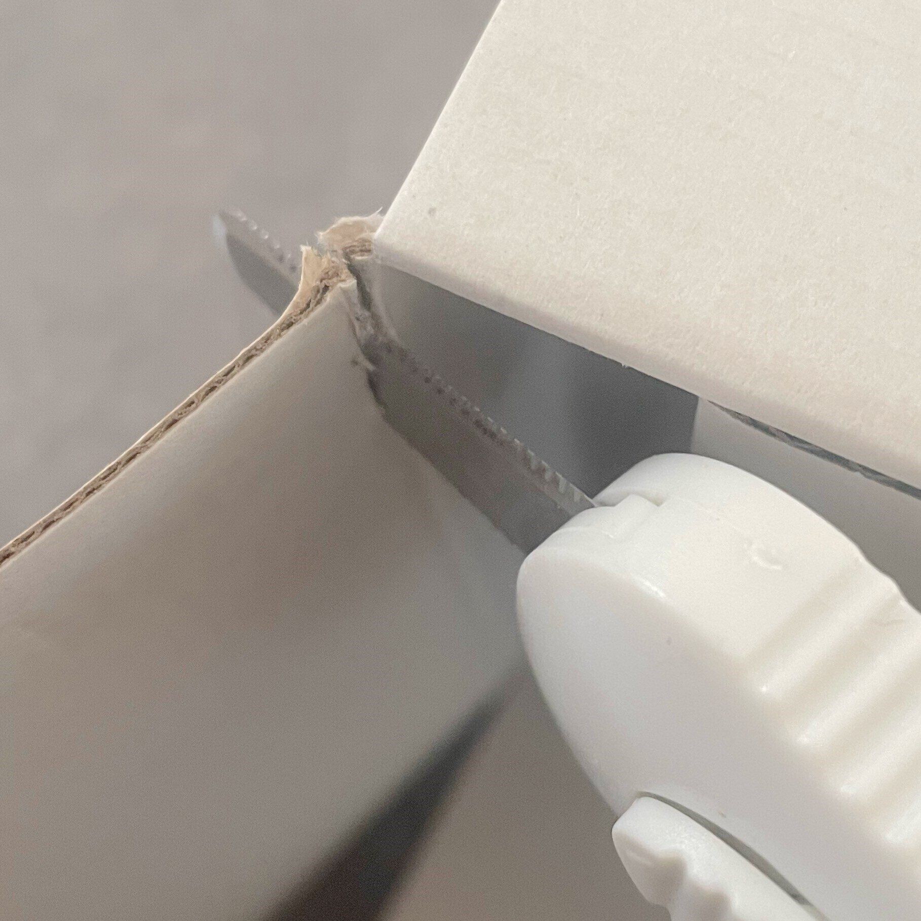 ガムテープやビニールテープなどで封がされた部分にカッターを当て、刃をすべらせればなんなく開封することができます!