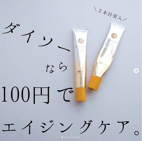 100均コスメは今や大人女子も大満足できる高コスパアイテムのひとつです。「amkkgram」さんオススメの100均コスメは、こちらのエイジングケア美容液。肌が弱い「amkkgram」さんでも安心して使え、リピートしてしまうほどの使い心地だとか。安心のメイドインジャパンなので、大人女子も試してみる価値大のアイテムです。