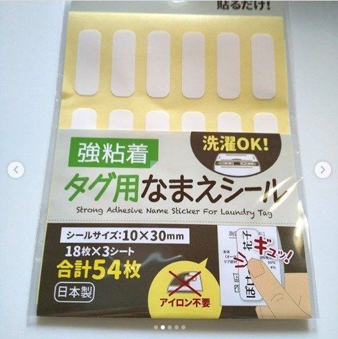指でギュッとタグに押しつけるだけでOKのなまえシール。アイロンも縫いつけも不要の手軽さが何よりの魅力です。つけ置きや漂白剤はNGですが、粘着力が強く洗濯しても大丈夫!54枚入りの大容量なので、兄弟が多くても1つでまかなえるので、経済的にもうれしいアイテム。タグがあれば、タオルや巾着などの学用品にも活用できます。