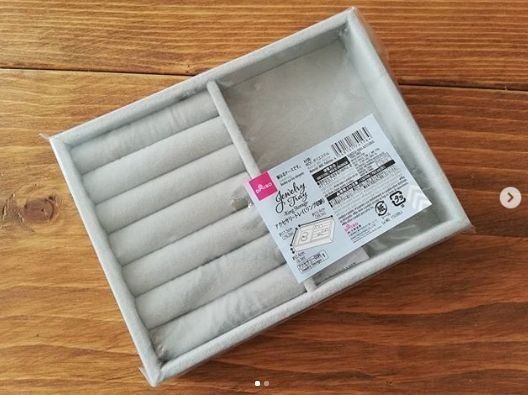 ダイソーで人気のアクセサリートレーです。ピアスや指輪など、こまかいものを収納するのにピッタリ。小さいサイズもありますので、用途に合わせてサイズを選んでみてくださいね。