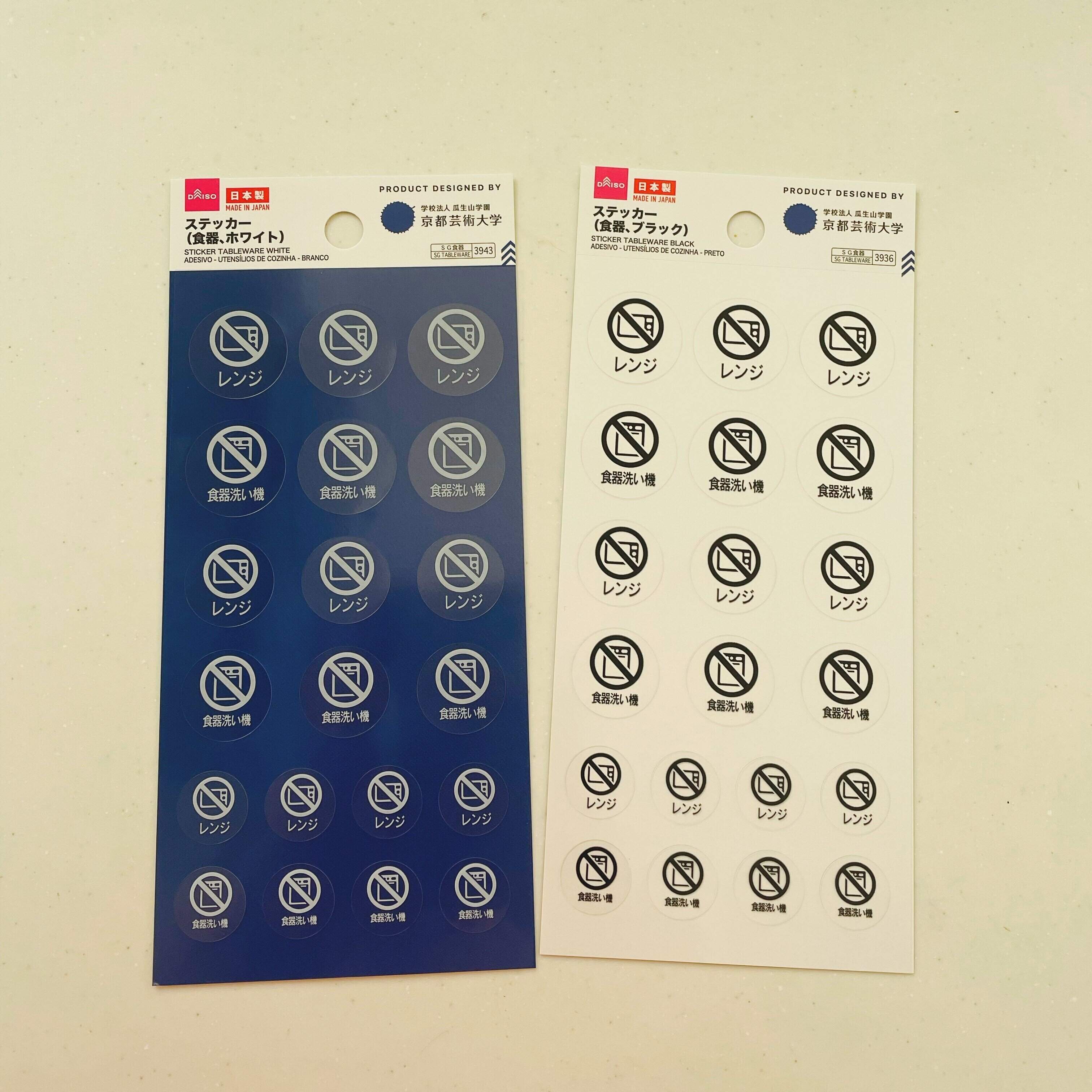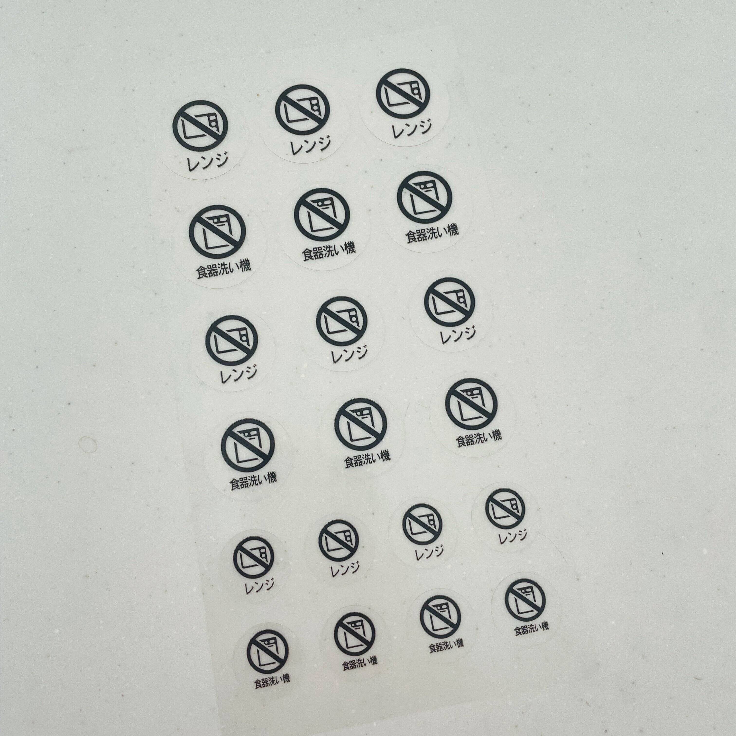 こちらが購入したステッカー。レンジNGと食器洗い機NGの表示がプリントされています。