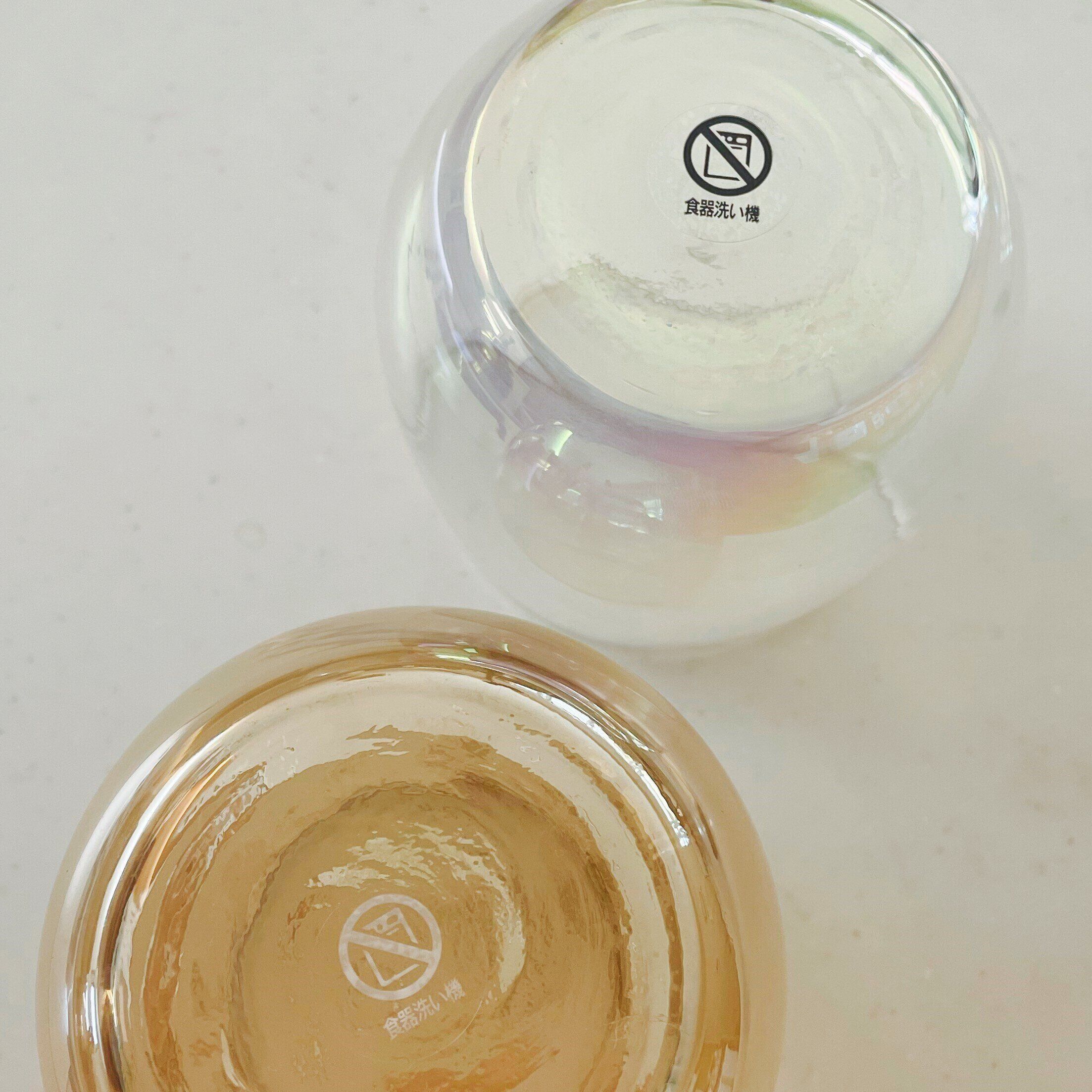 グラスの底にステッカーをペタリ!こちらのグラスはレンジもNGですが、我が家ではレンジで使うことはないため食器洗い機NGのステッカーのみ貼りました。