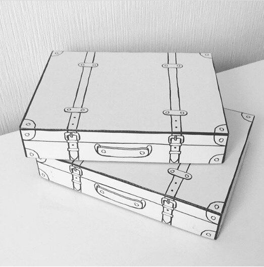 23.5×18cm×4.5cmとコンパクトですがインテリア性抜群のペーパーボックスは、無造作に積み重ねても絵になるひと品。スーツケース型ということで旅の思い出や写真の管理にもぴったりです。シールやステンシルで自分好みにデコレーションを楽しんでも良さそうですね。