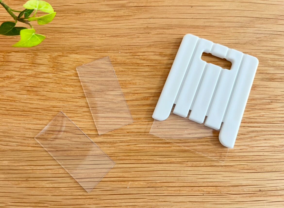 こちらの商品は見た目はとってもシンプルなデザインのスクレーパーで、スクレーパー本体と付け替え用の透明のヘラシートが2枚セットになって入っています。ヘラの部分が透明なのは、スクレーパーとしては少し珍しいですよね。