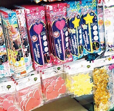 ライブのお供のうちわやステッカー、”光る棒”が充実!また、推しグッズを飾るときに便利なウォールポケットや手作りできる缶バッジなど、推しにどっぷりハマれるアイテムが豊富。