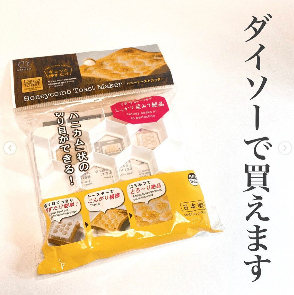 毎朝の食パンがこれ1つでリッチに!こちらのハニートーストカッターを食パンに押し当てるだけで、食パンの表面にハニカム状の切り目が簡単に入れられます。切り目を入れた後はトースターでこんがり焼き目をつけて、はちみつをかけて召し上がれ!切れ目にはちみつがしっかり溜まって、カフェのようなおいしいハニートーストができますよ。