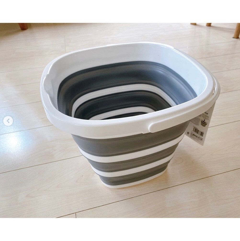 ダイソーで550円で買えるこちらの折りたたみ角バケツ、容量は7.5Lもあり、なかなか使い勝手がいい人気商品なんです。洗濯物やシューズをつけおき洗いしたいとき、一時的に水を溜めておけるバケツは重宝しますよね。使わないときは折りたたんで省スペースでおいておけるのがポイントです。1つあると災害時にも安心ですね。